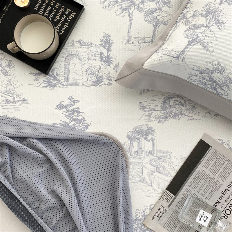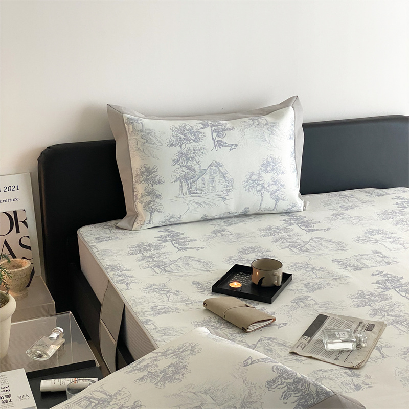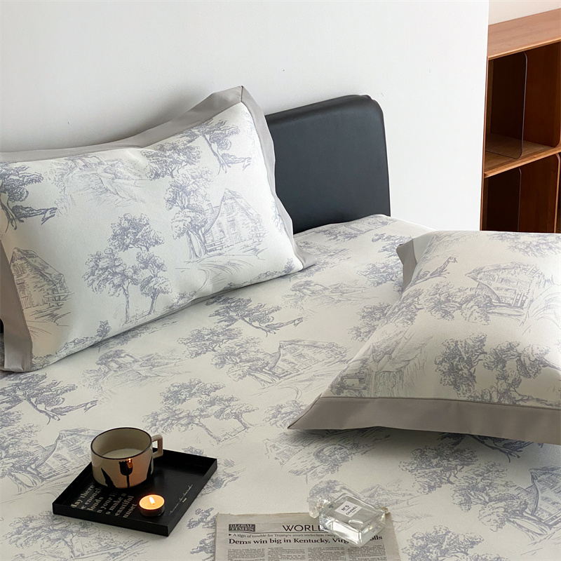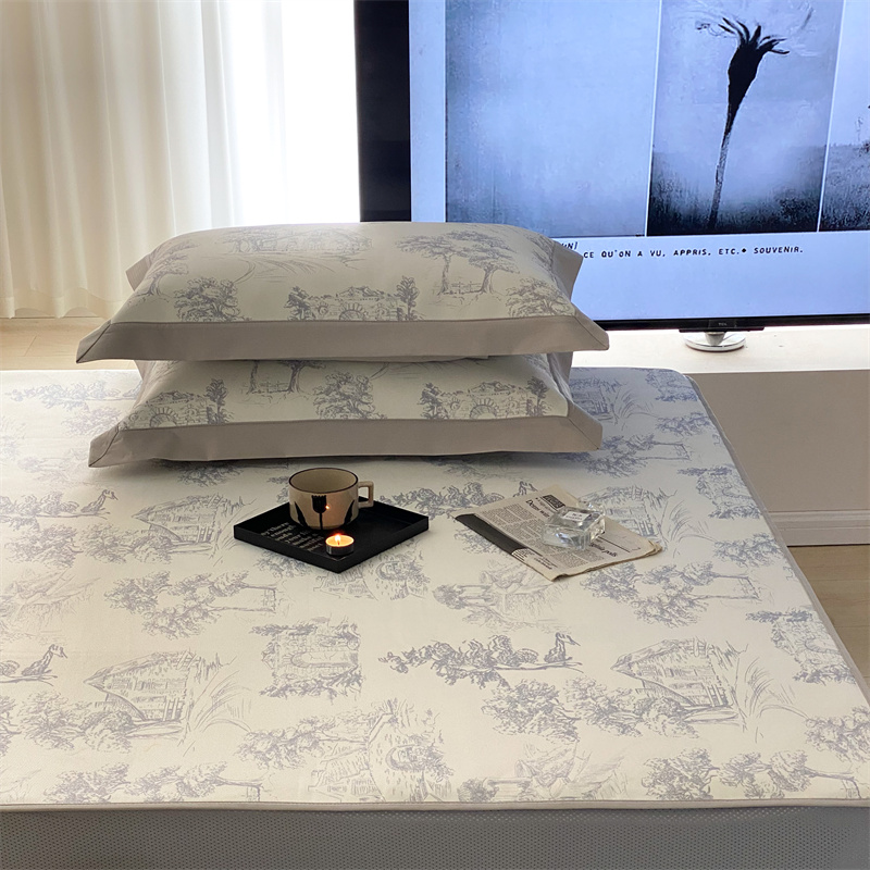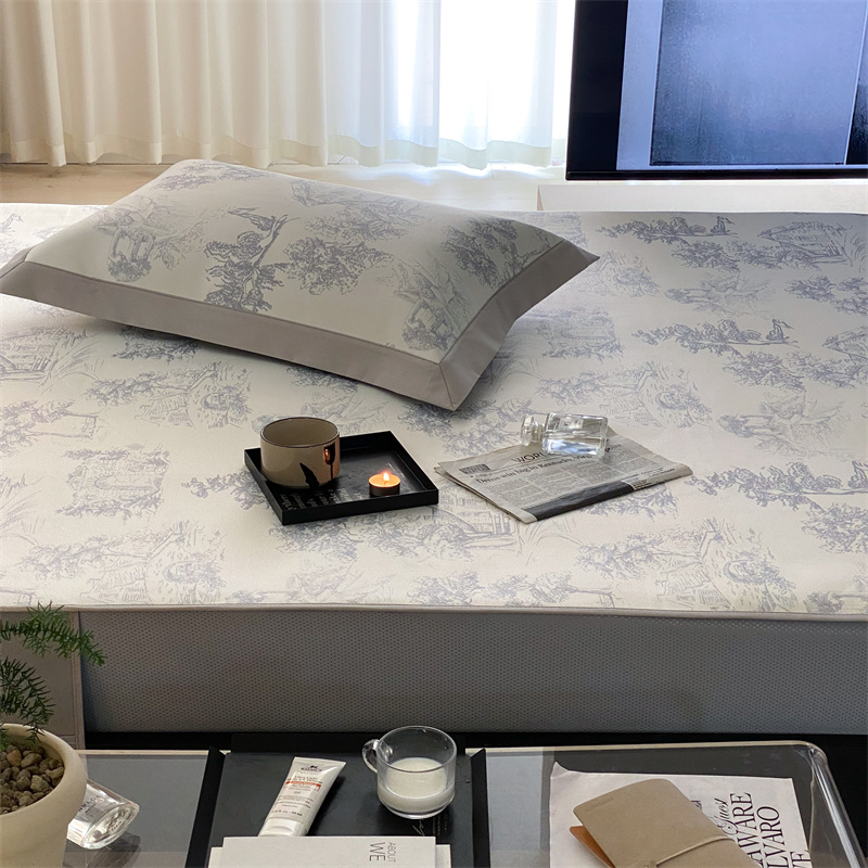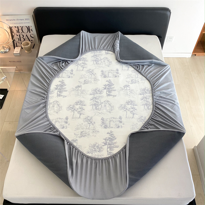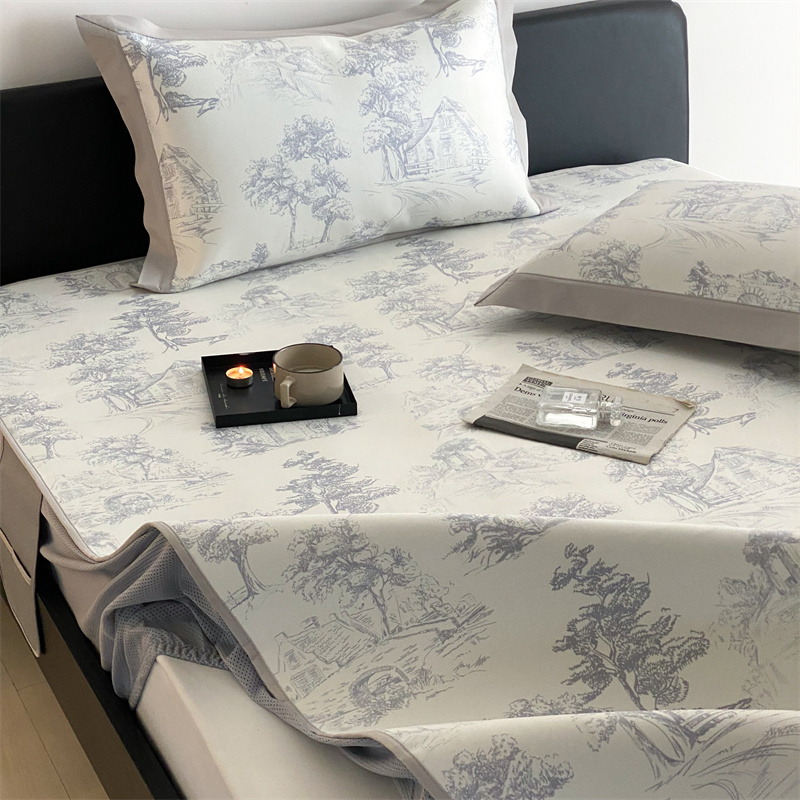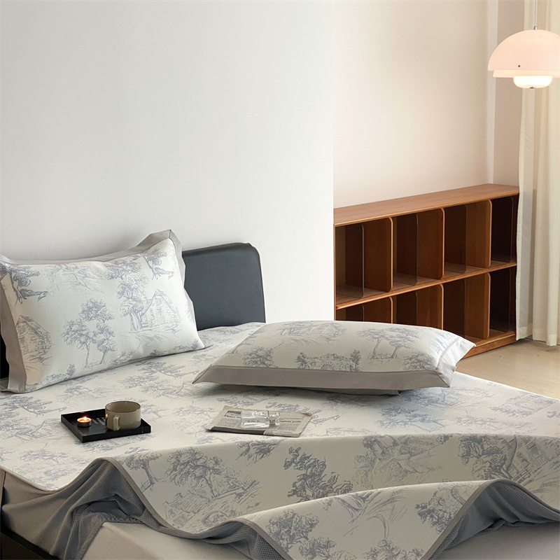 三味舒屋 2025新款西西里印花冰丝席-床笠款实拍2 西西里灰色