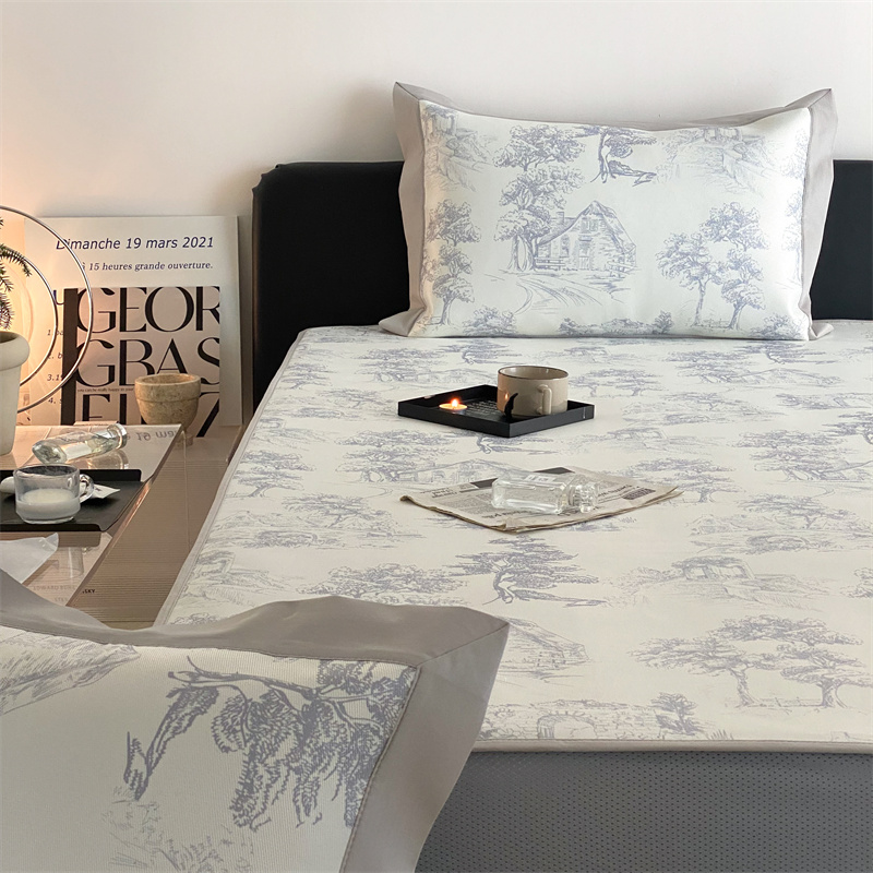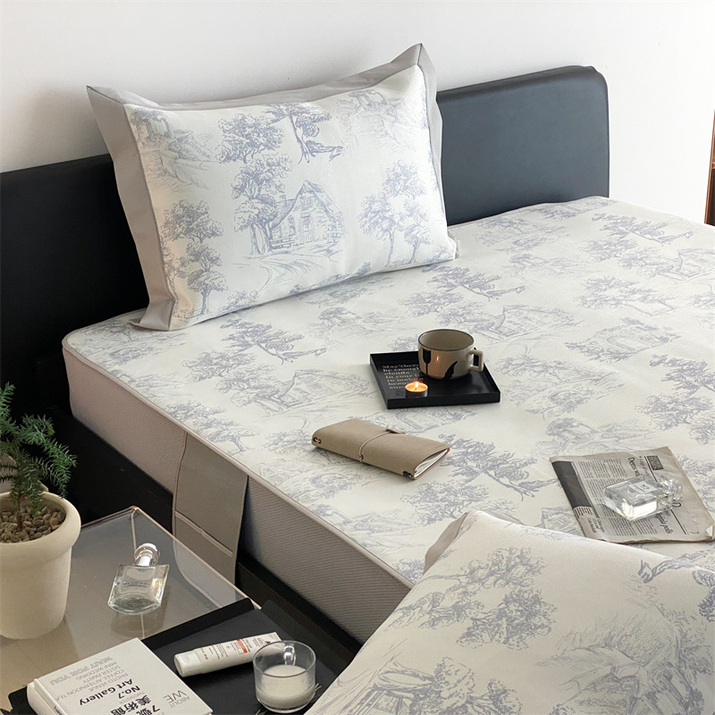 (总)三味舒屋 2025新款麦吉拉时尚印花冰藤凉席席子,麦吉拉 米 床席,麦吉拉 蓝 床席,麦吉拉蓝 床笠,麦吉拉米 床笠