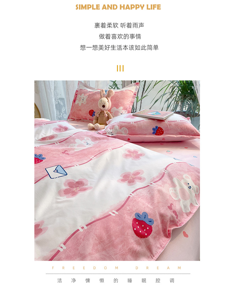 (总)宏源家纺 2023年4月新款芦荟棉亲肤印花四件套,宝藏,星黛兔,格韵,玫红黑条,粉心兔,绿黑条,花园兔
