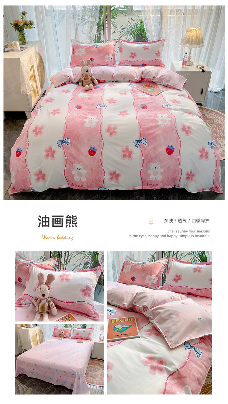 宏源家纺 2022新款亲肤棉芦荟棉四件套7月新花型 油画熊