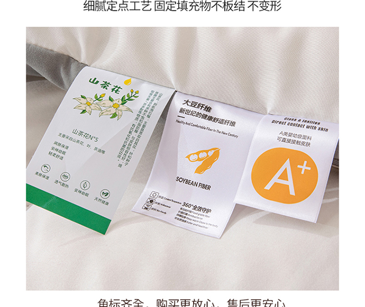 • 填充纤维种类: 大豆蛋白改性聚酯纤维