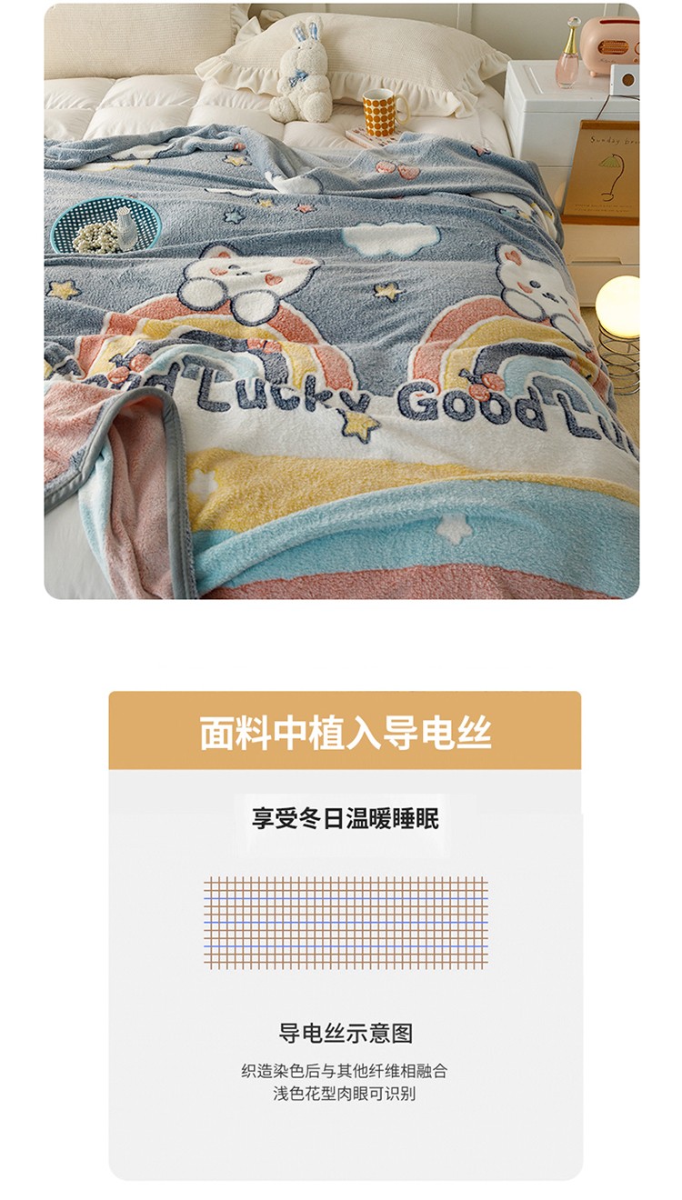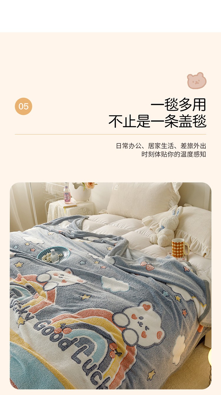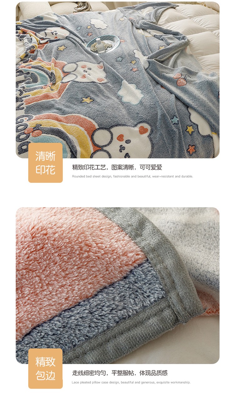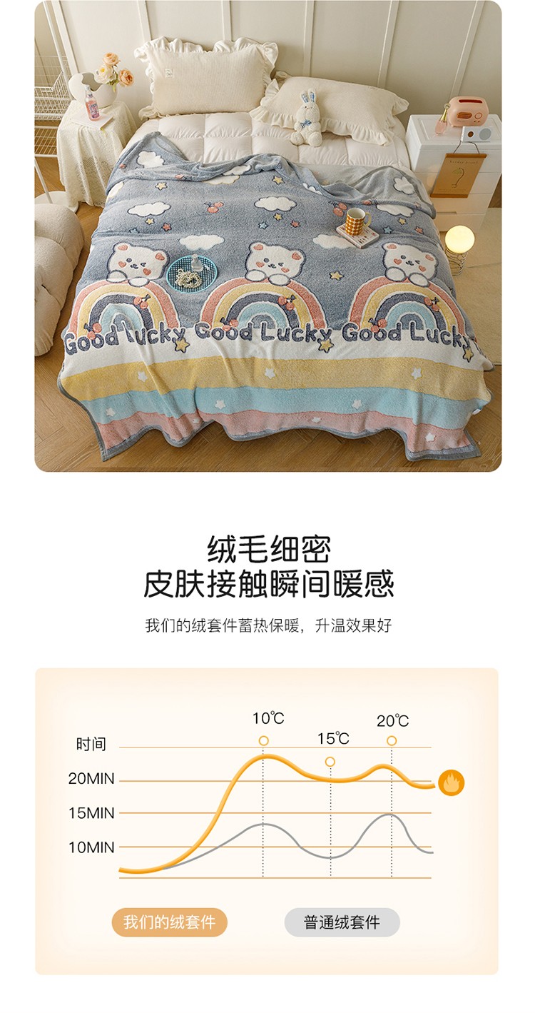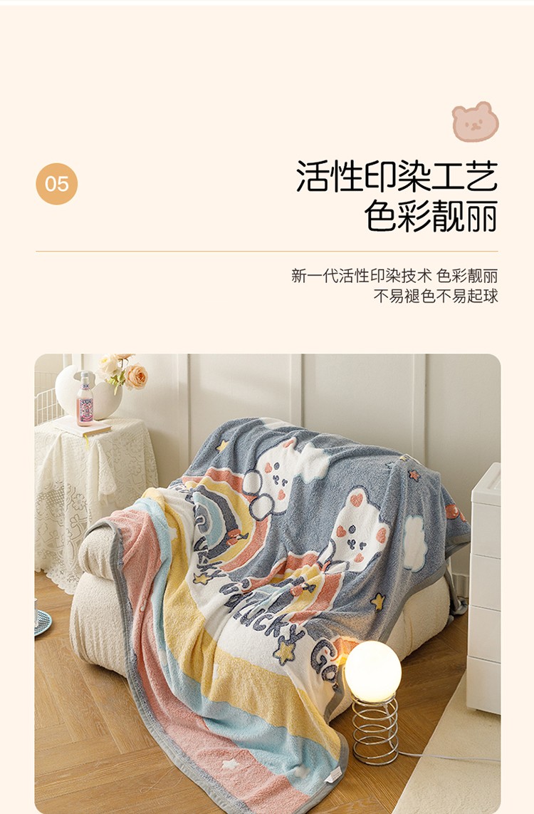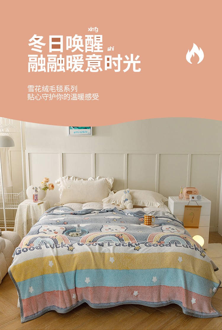 慕尚2022新款雪花绒毛毯印花牛奶绒盖毯沙发午睡毯子幸运小熊