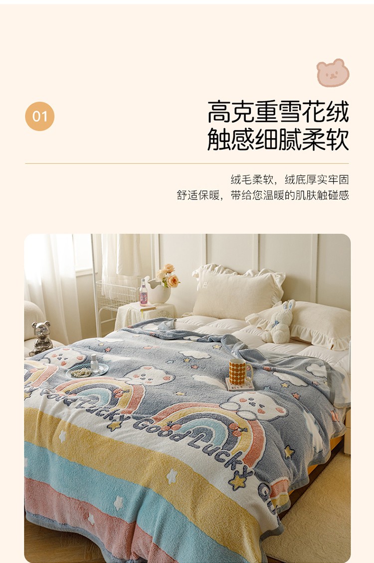 商品名称:慕尚2022新款雪花绒毛毯印花牛奶绒盖毯沙发午睡毯子幸运小熊