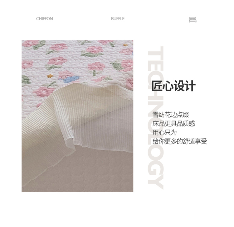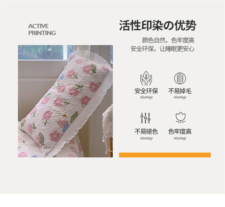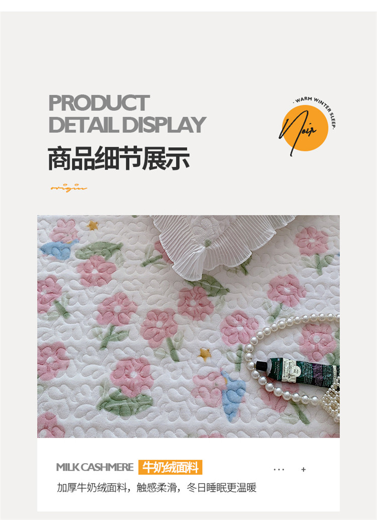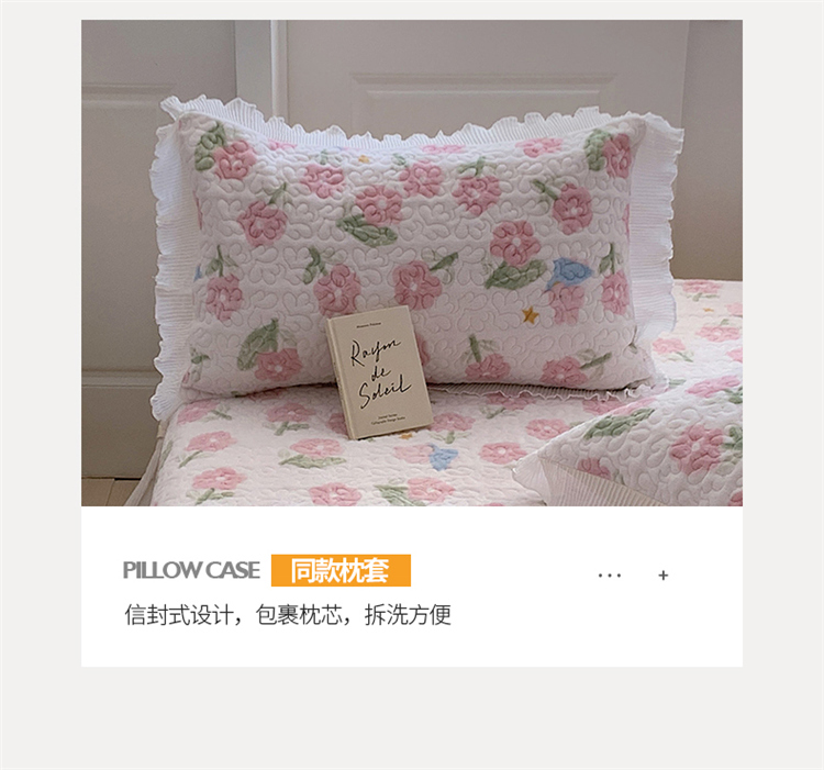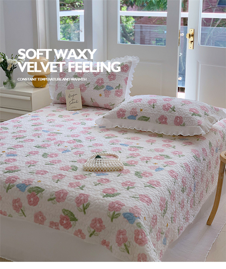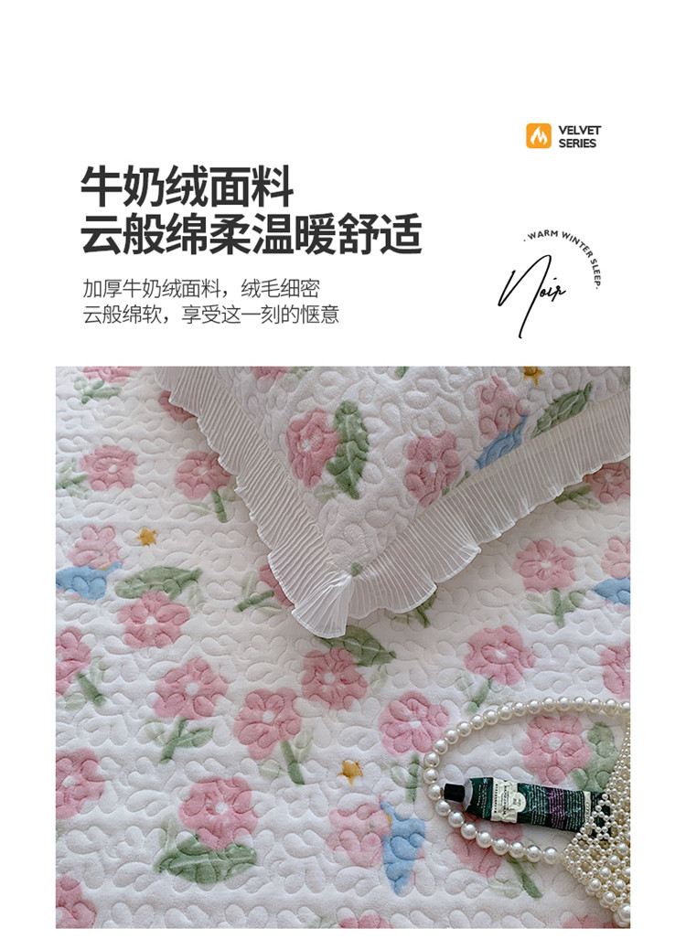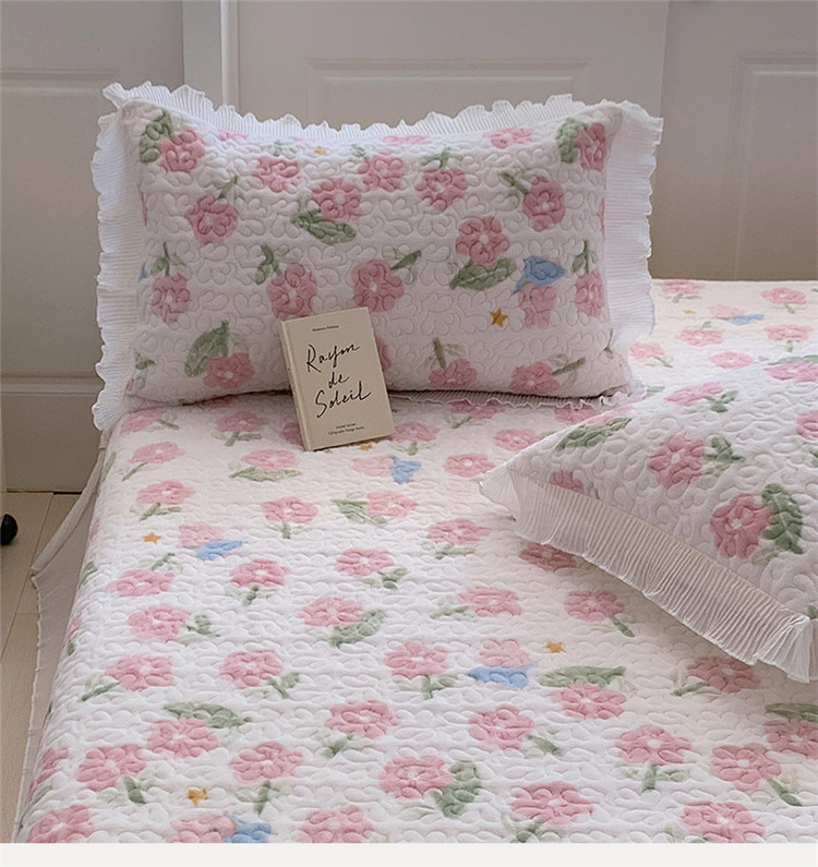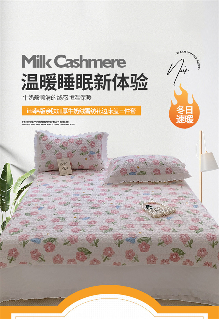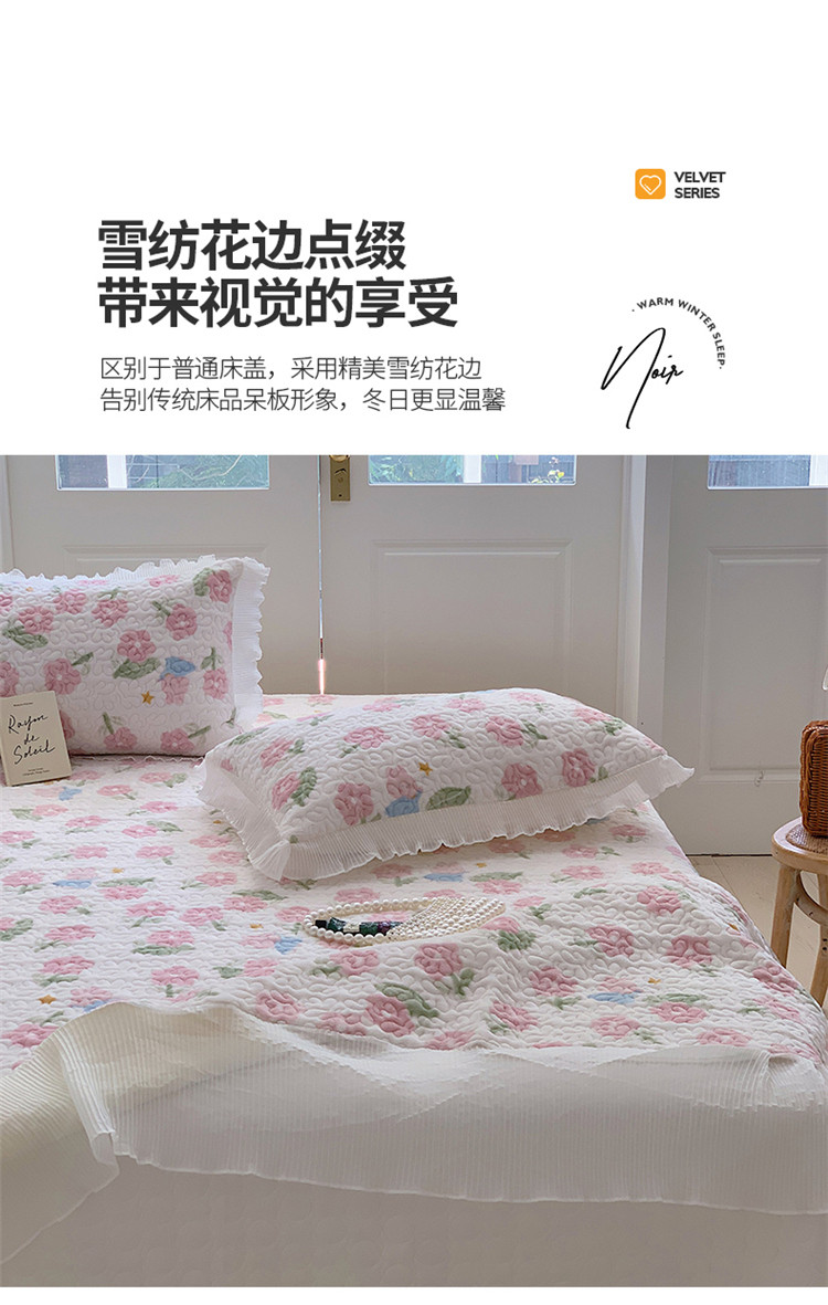 桃子ins韩版亲肤加厚牛奶绒雪纺花边床盖三件套 兔小花