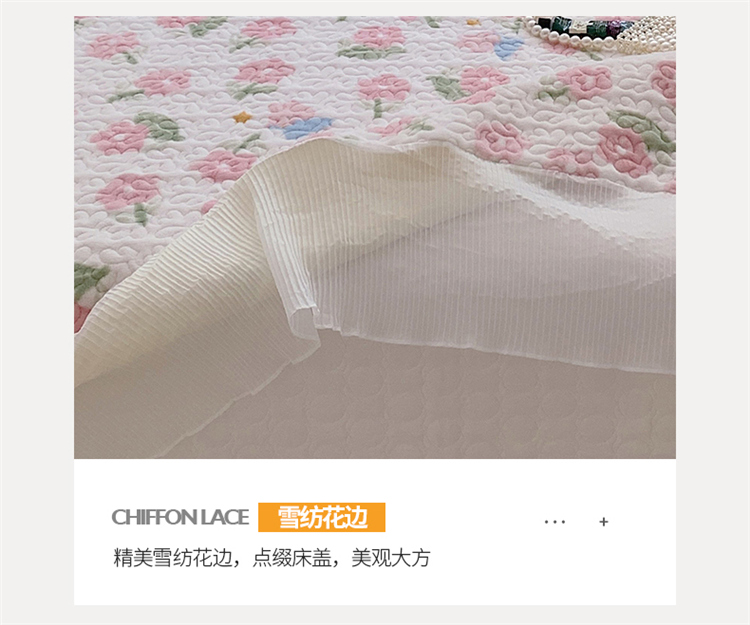 商品名称:桃子ins韩版亲肤加厚牛奶绒雪纺花边床盖三件套 兔小花