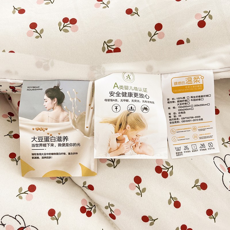 商品名称:梦初语 2022年A类针织棉大豆纤维冬被 兔子樱桃