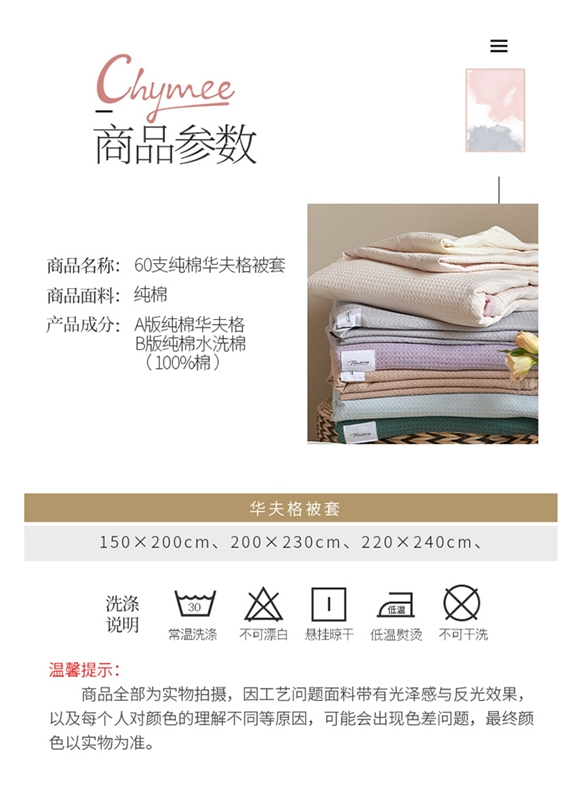 (总)时光里 2022新款60支纯棉华夫格系列-被套