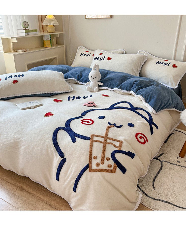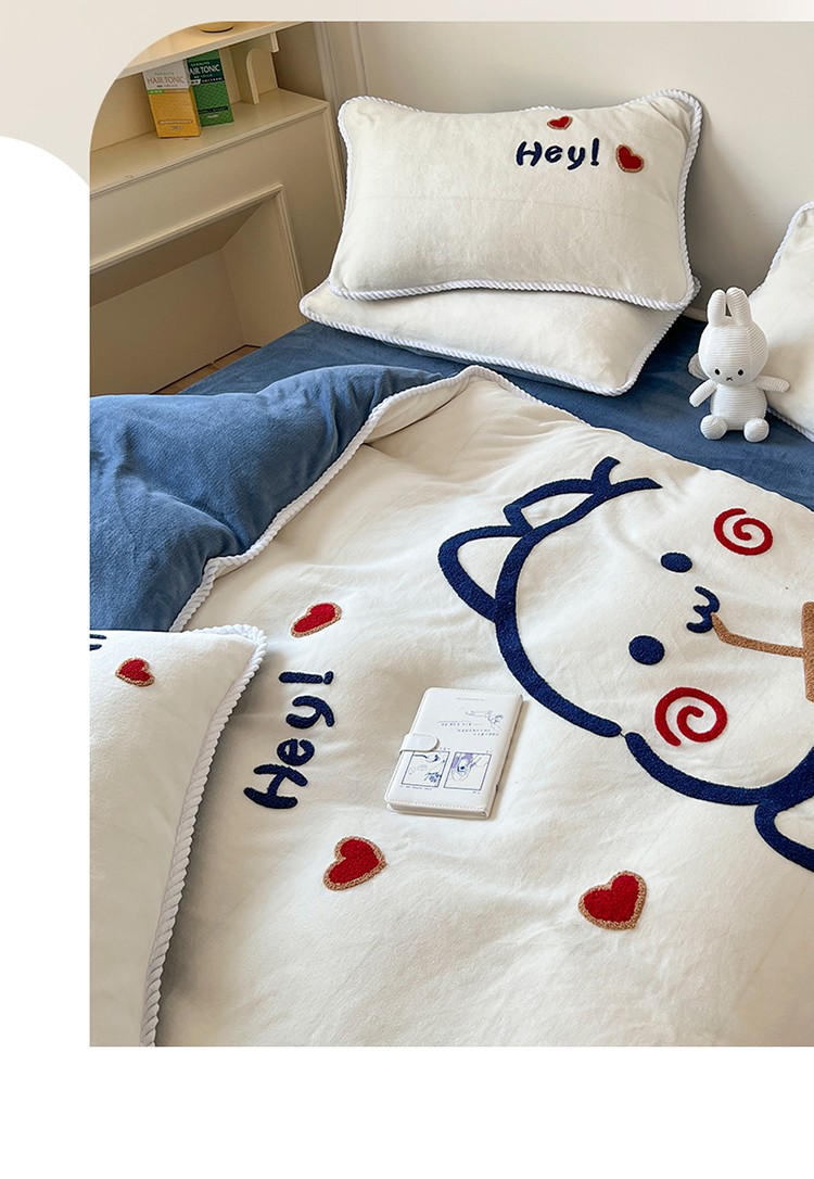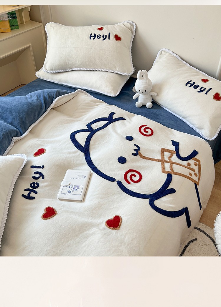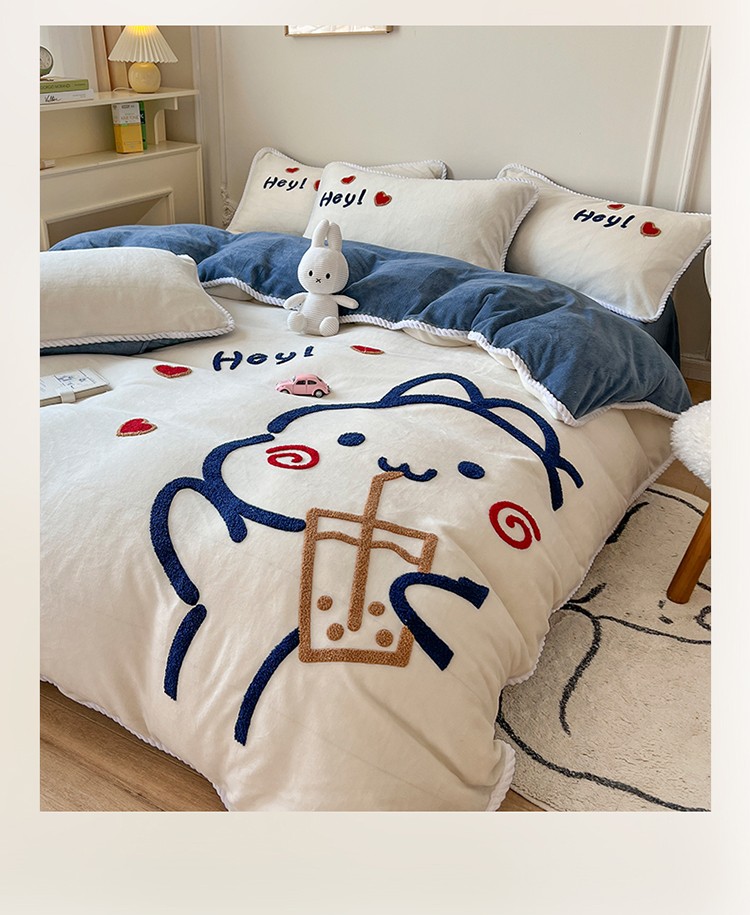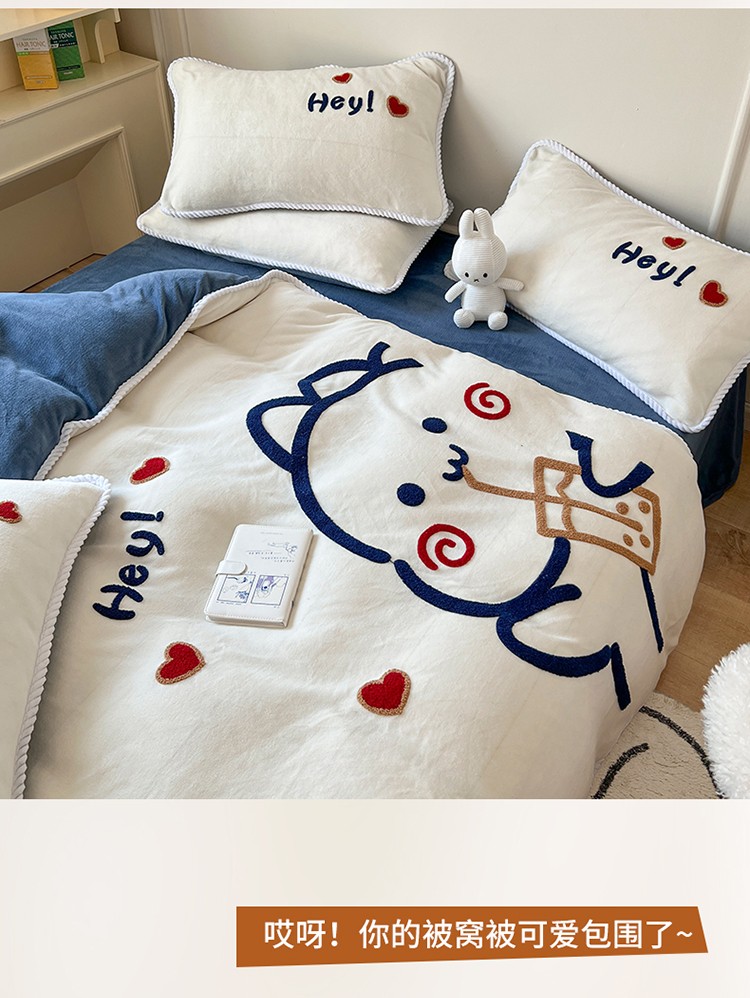 (总)芯贝儿 2025款加厚小清新花边牛奶绒卡通四件套,Q萌小熊,花园狗,蓝格小狗,萌宠派对,南瓜抱抱熊,甜心猫咪,星星宠物,元气猫咪,周末宠物园