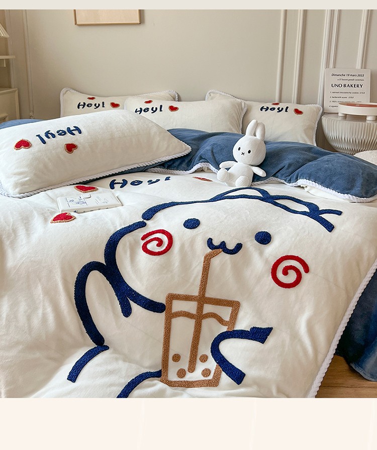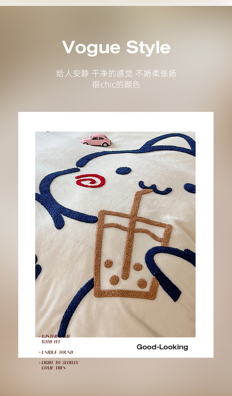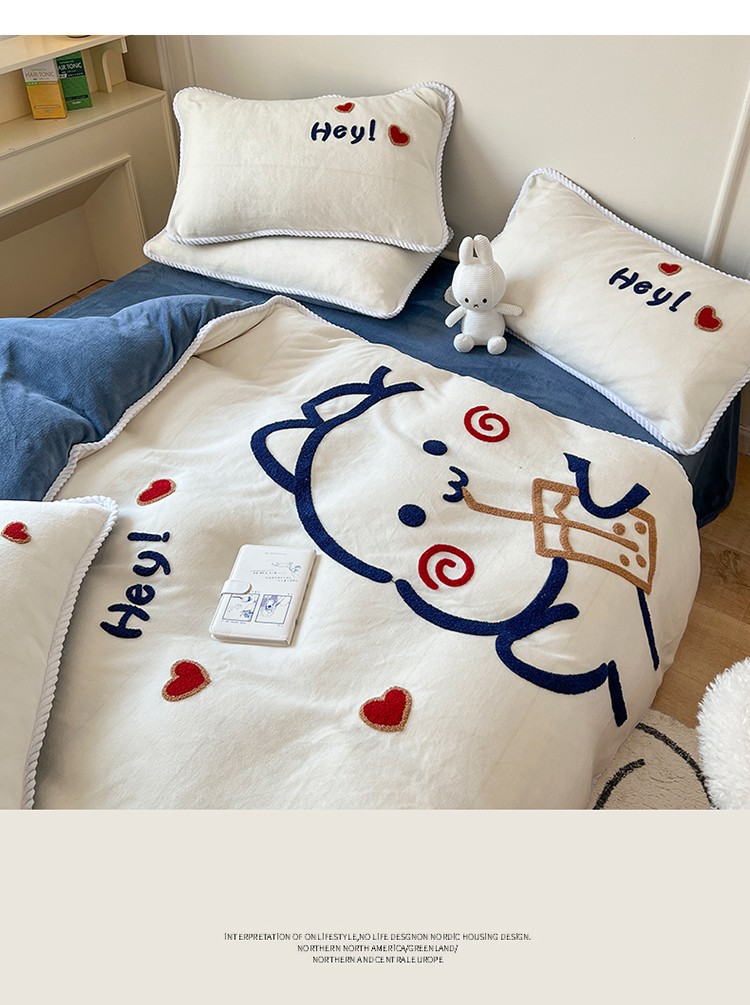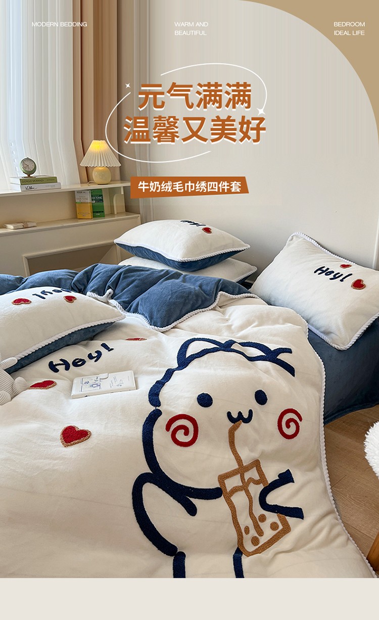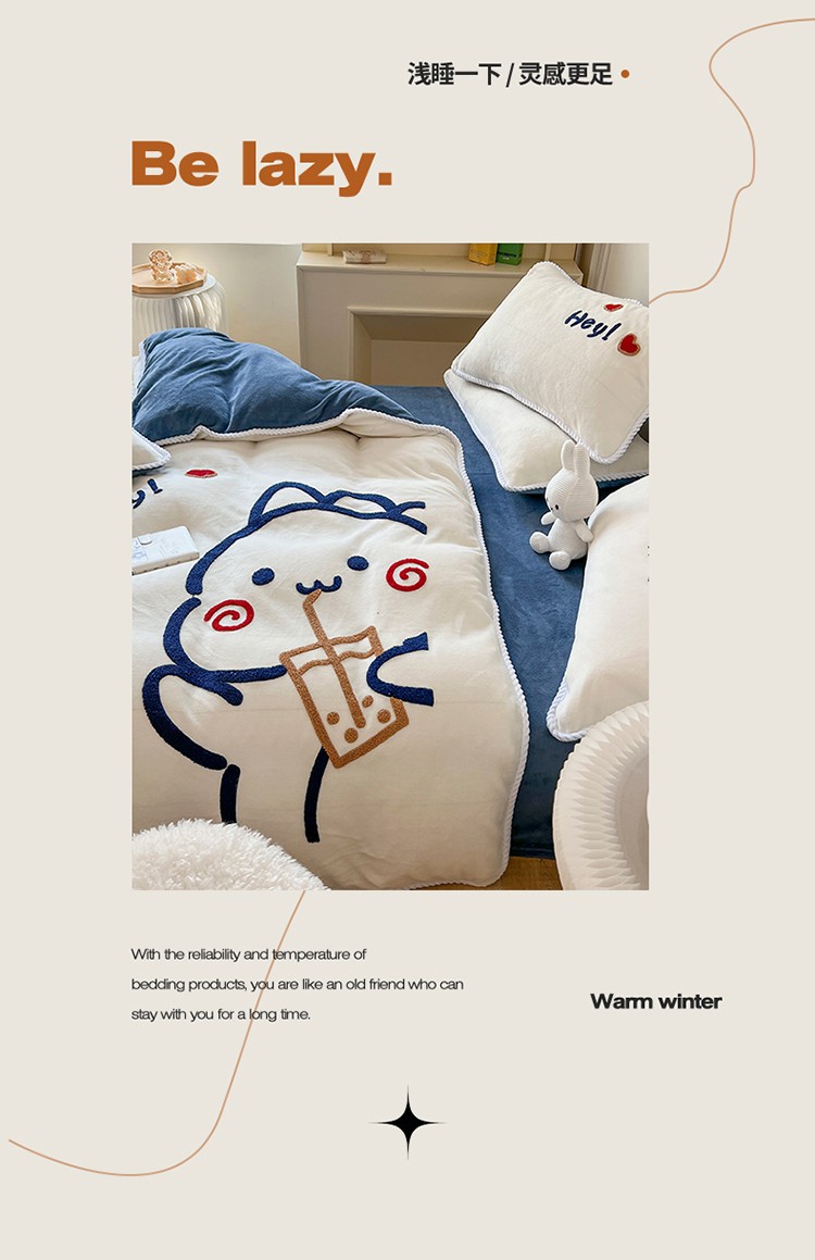 (总)芯贝儿 2025款加厚小清新花边牛奶绒卡通四件套,Q萌小熊,花园狗,蓝格小狗,萌宠派对,南瓜抱抱熊,甜心猫咪,星星宠物,元气猫咪,周末宠物园