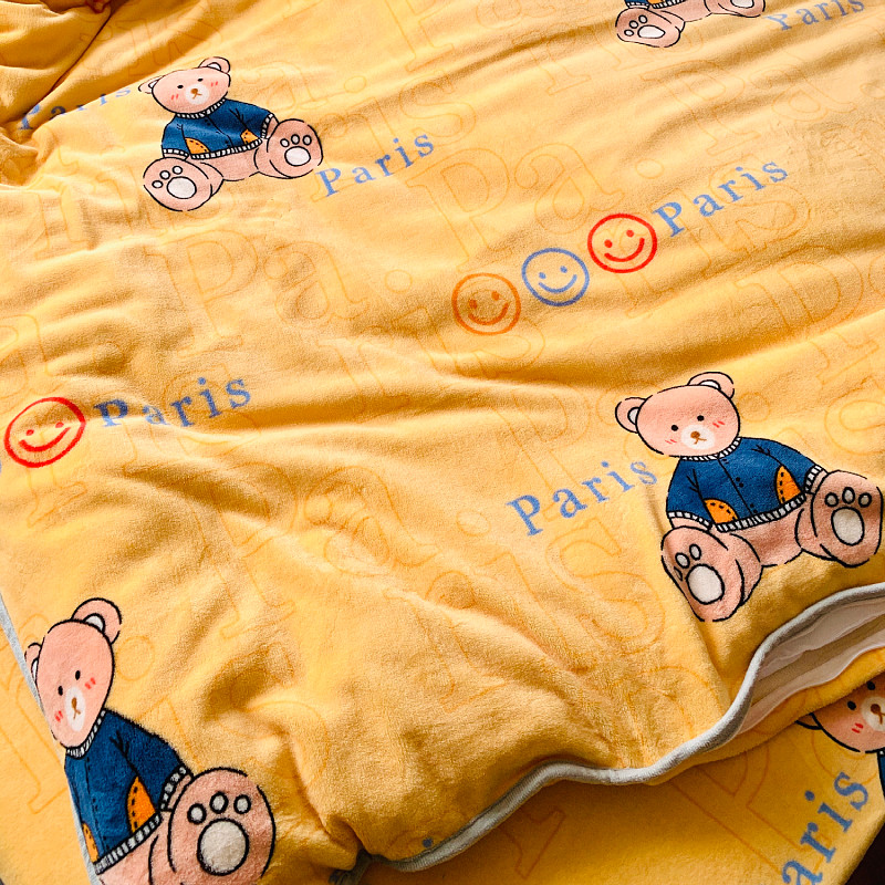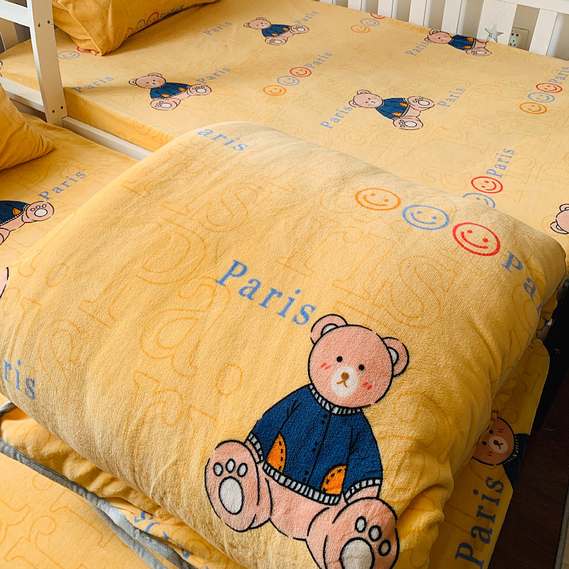 小虾米 2022新款加厚牛奶绒被套单件套三件套 巴黎熊