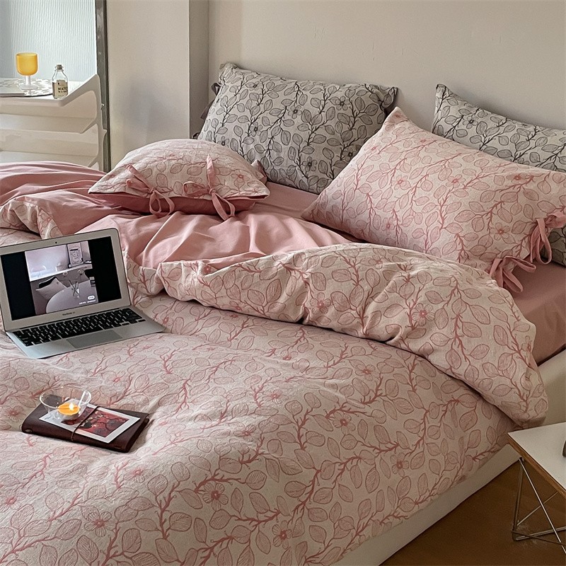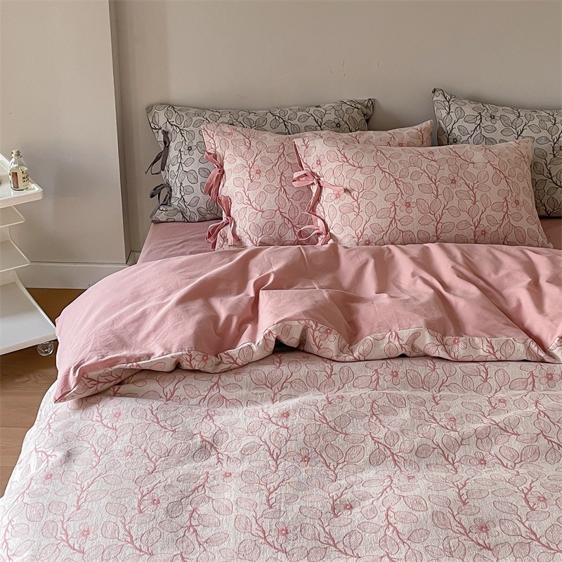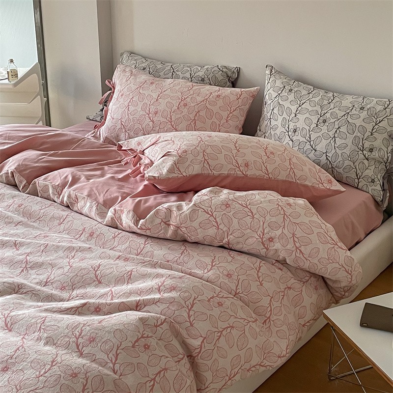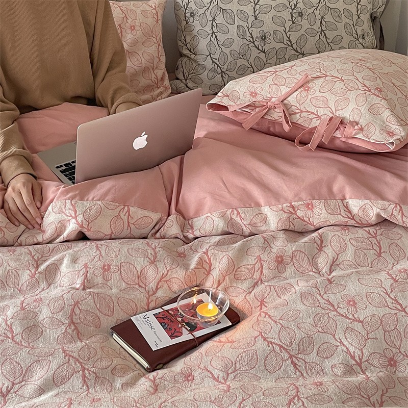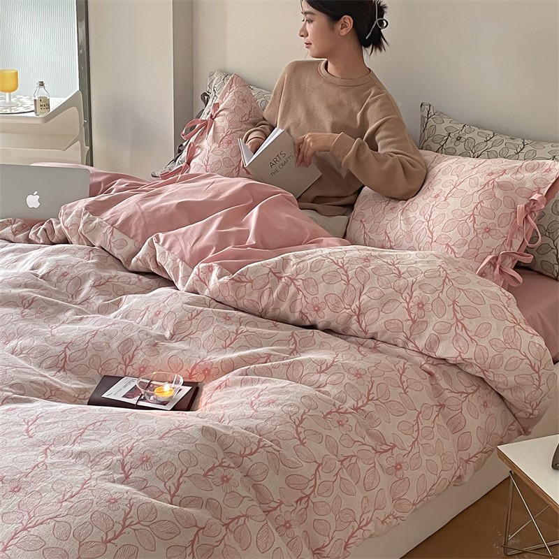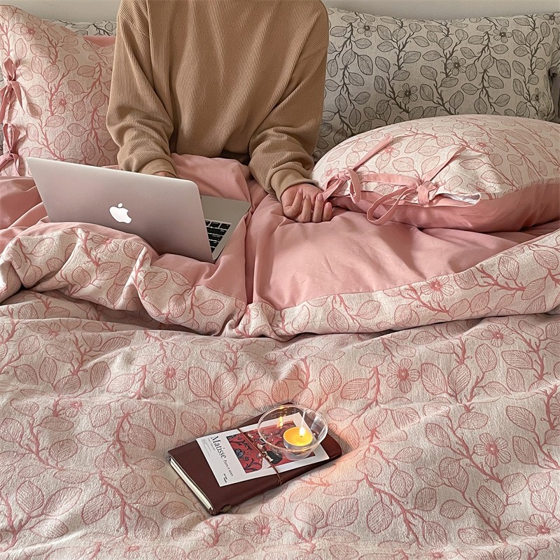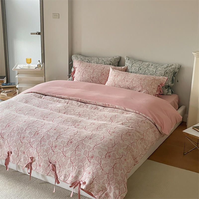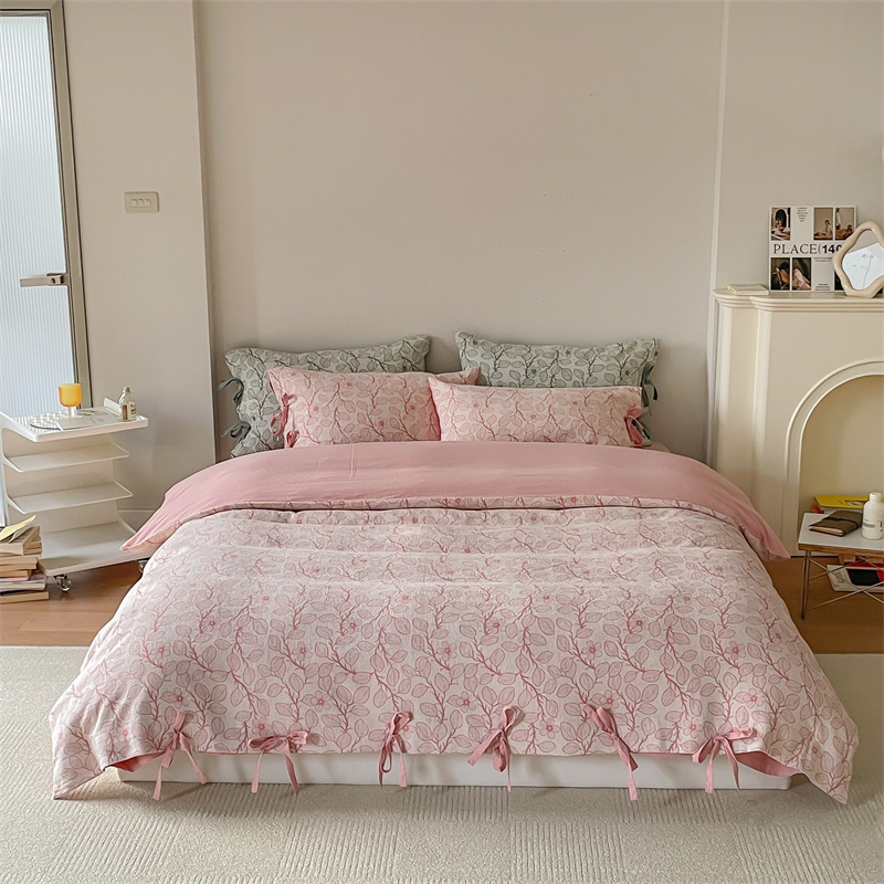 (总)华超针织 2025新款亲肤舒适全棉纯棉针织五件套四件套,奶糖+樱桃,杏粉+花田,杏灰+玫瑰