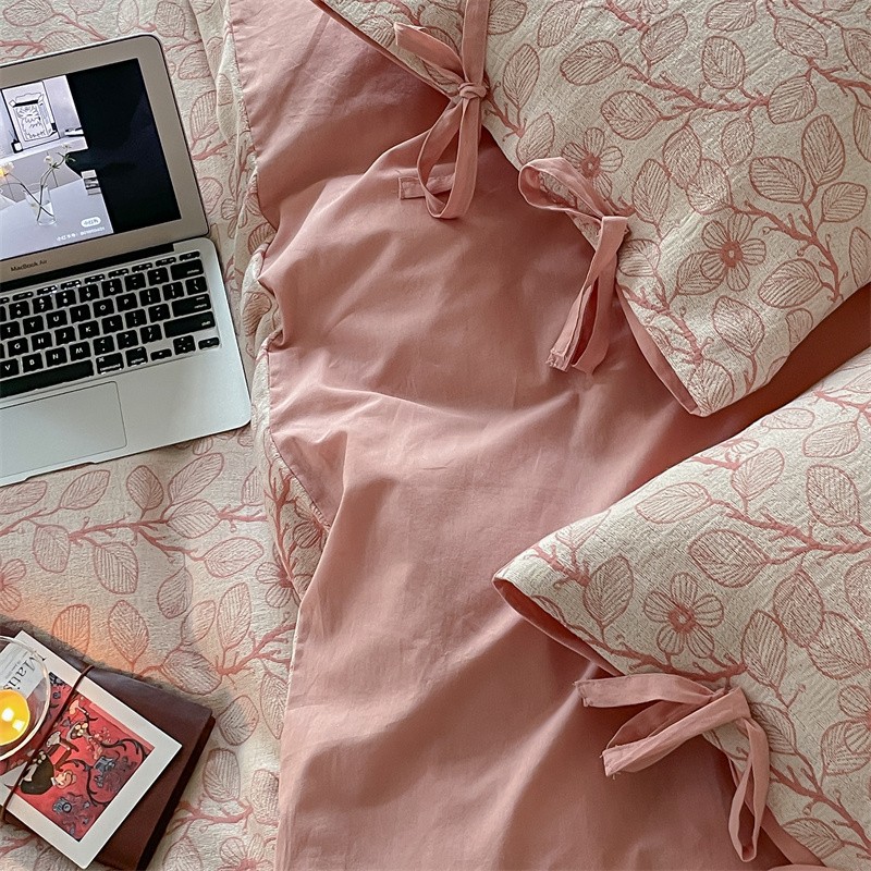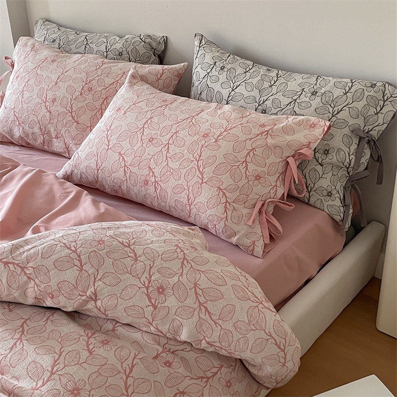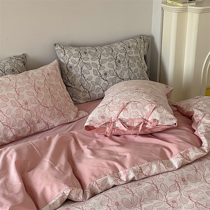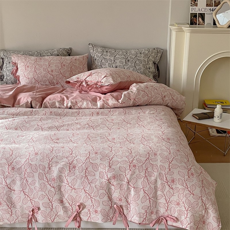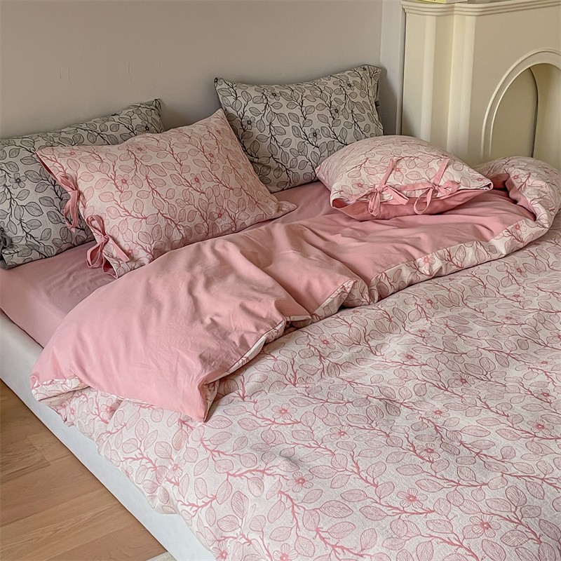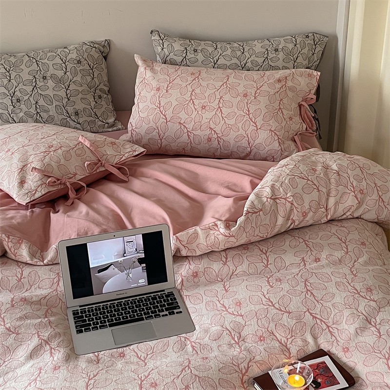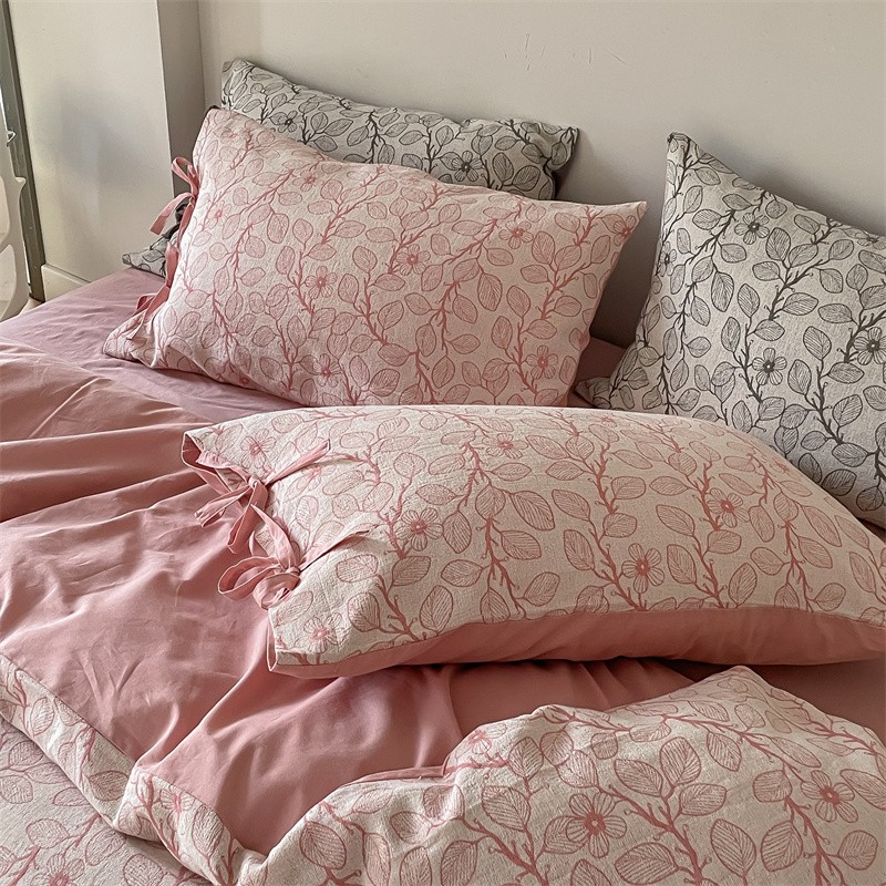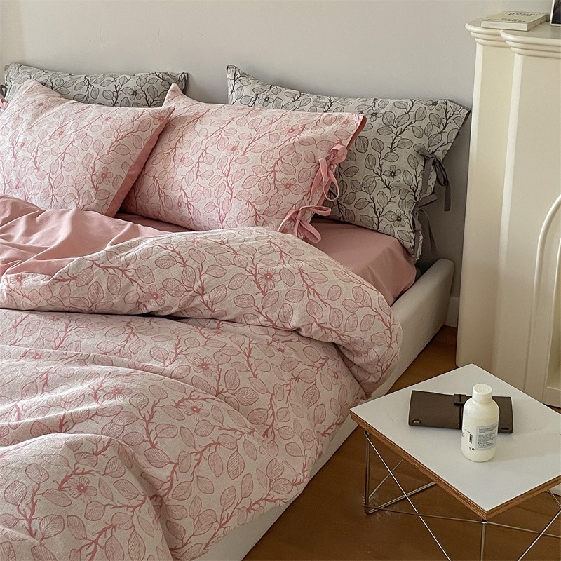 (总)华超针织 2025新款亲肤舒适全棉纯棉针织五件套四件套,奶糖+樱桃,杏粉+花田,杏灰+玫瑰