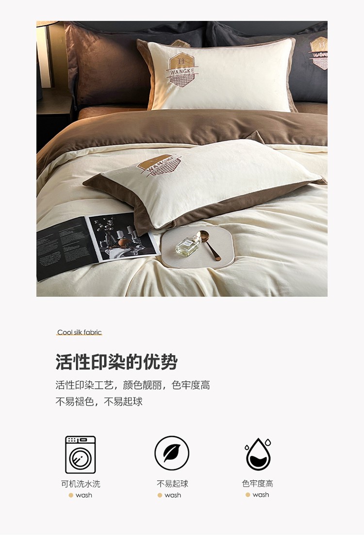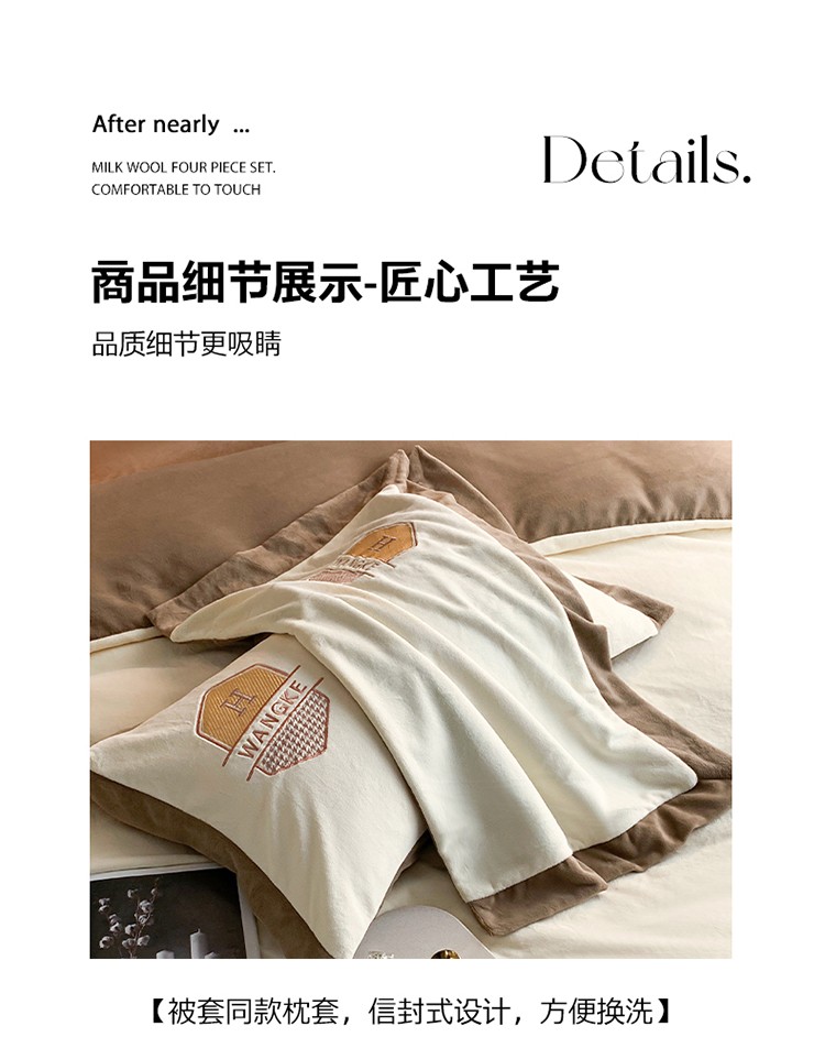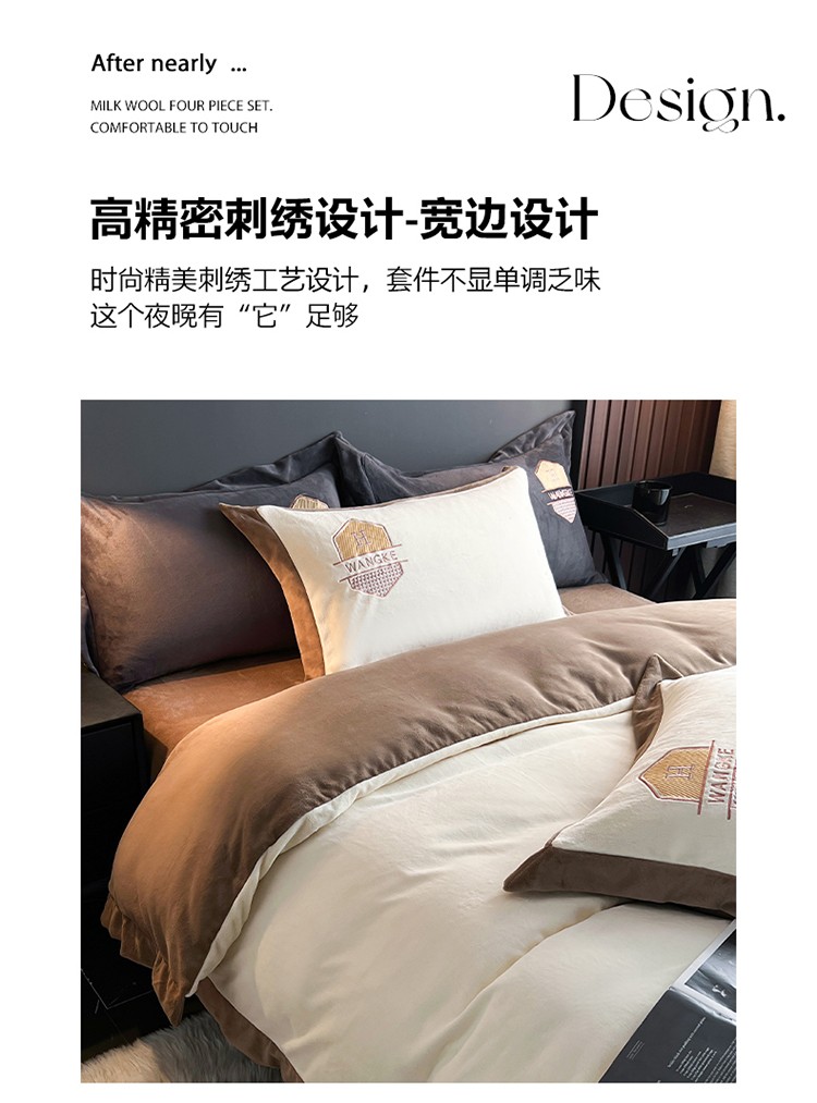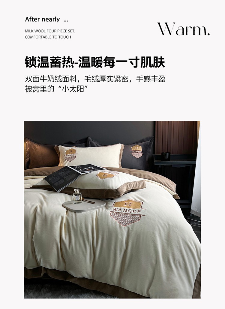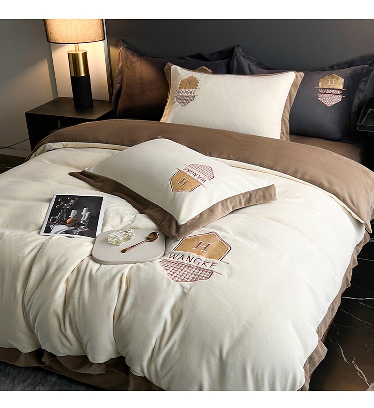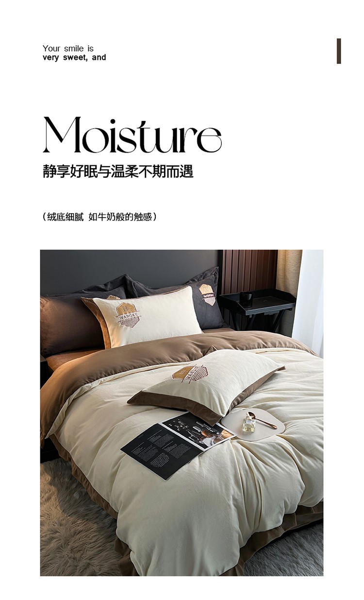 当前位置: 91家纺网 > 商品网购 > 床品套件 > 四件套 > 牛奶绒四件套 > 网客 2024新款牛奶绒四件套拼色绣花系列 奶白