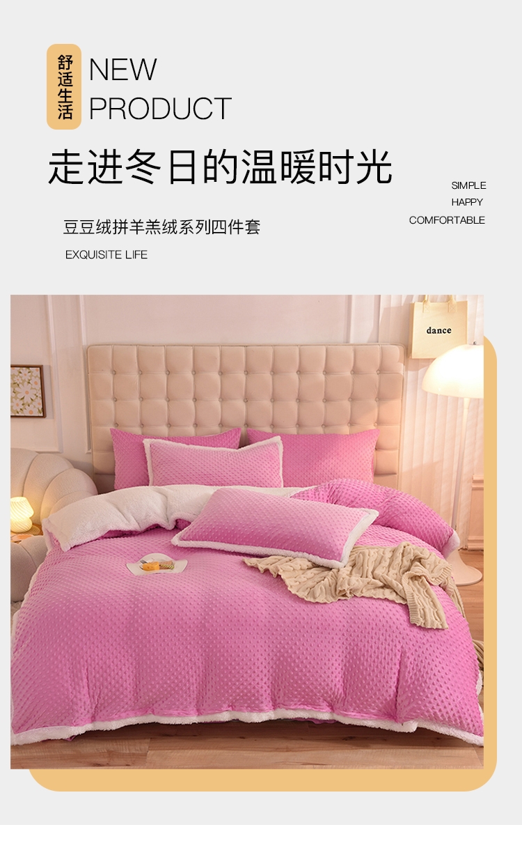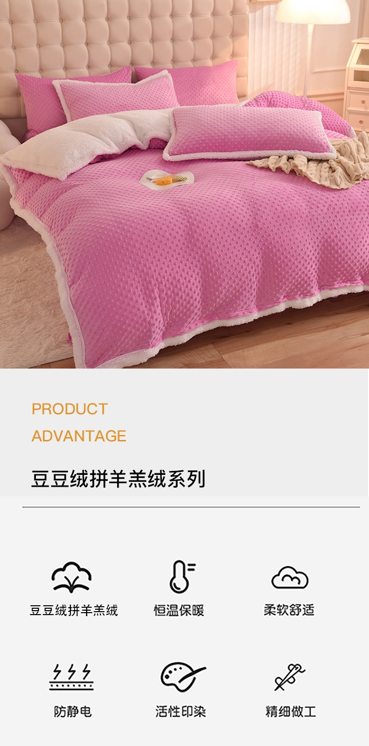 商品名称:艾米家居 2022秋冬新款豆豆绒+羊羔绒系列 玫红
