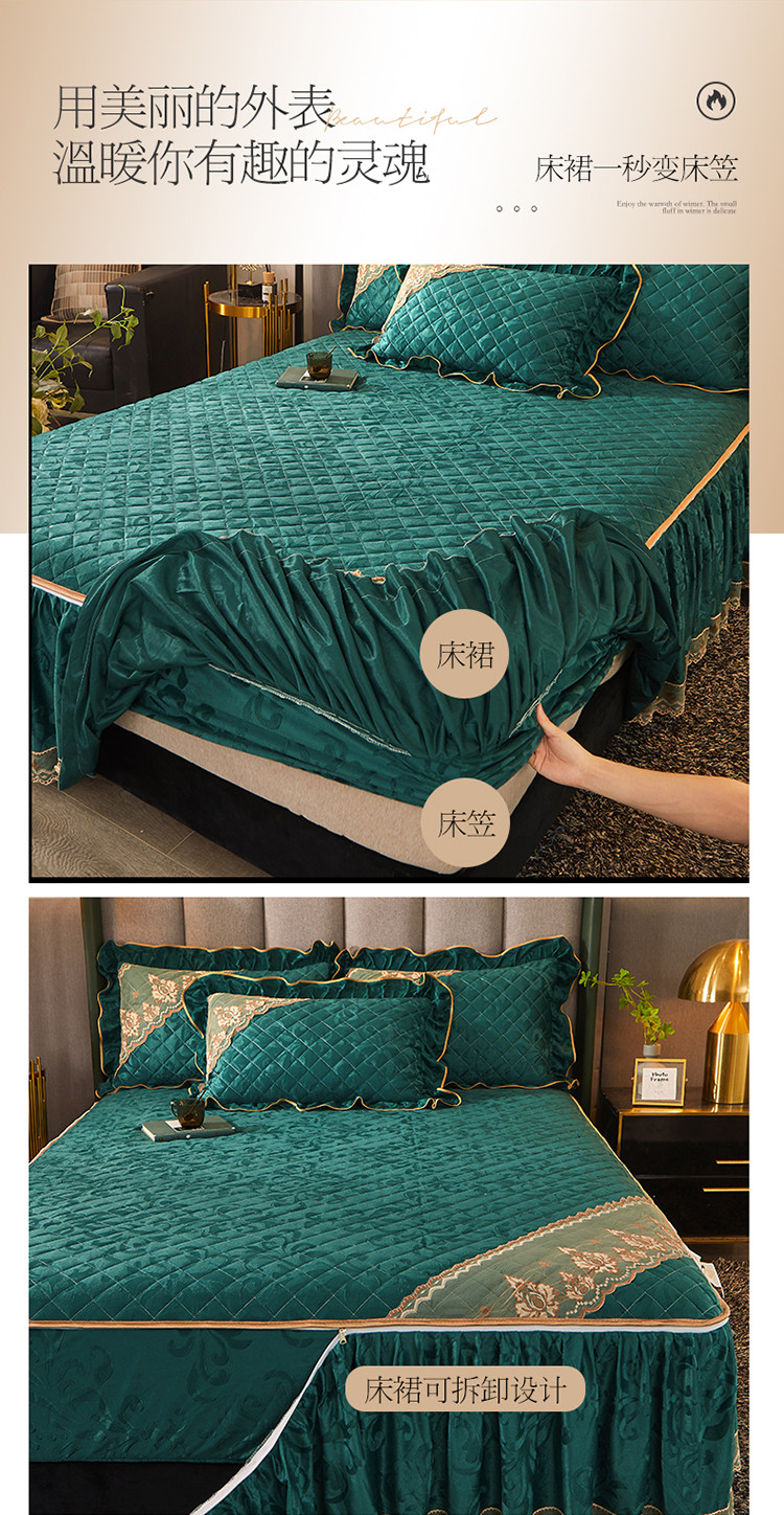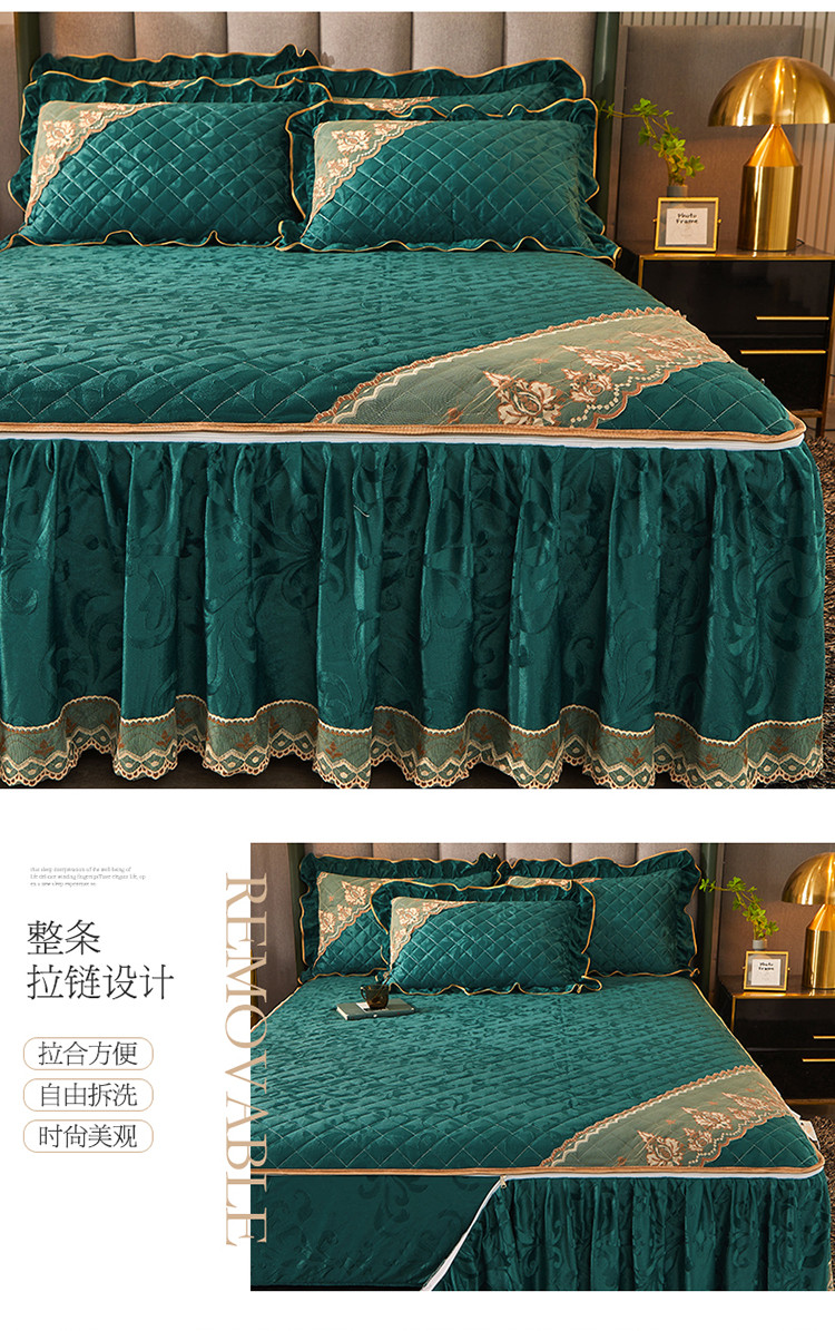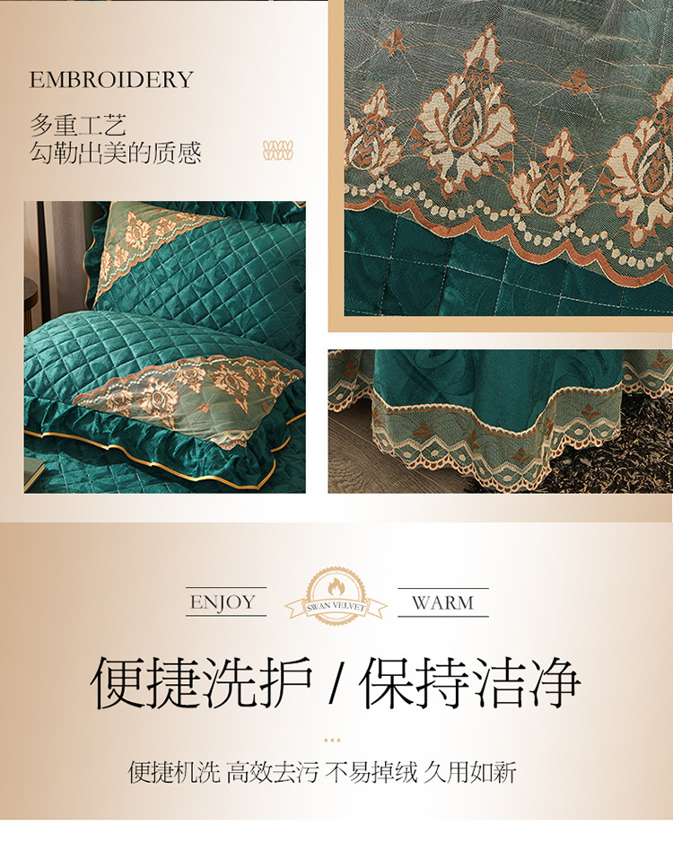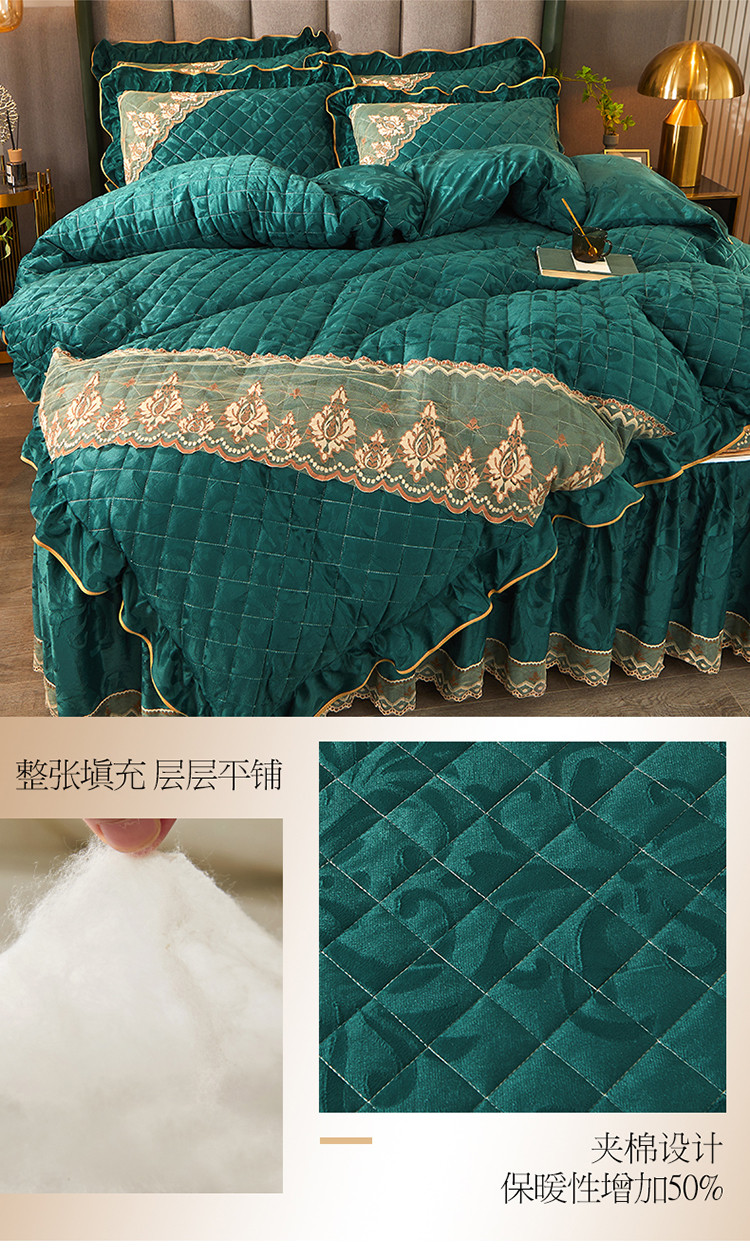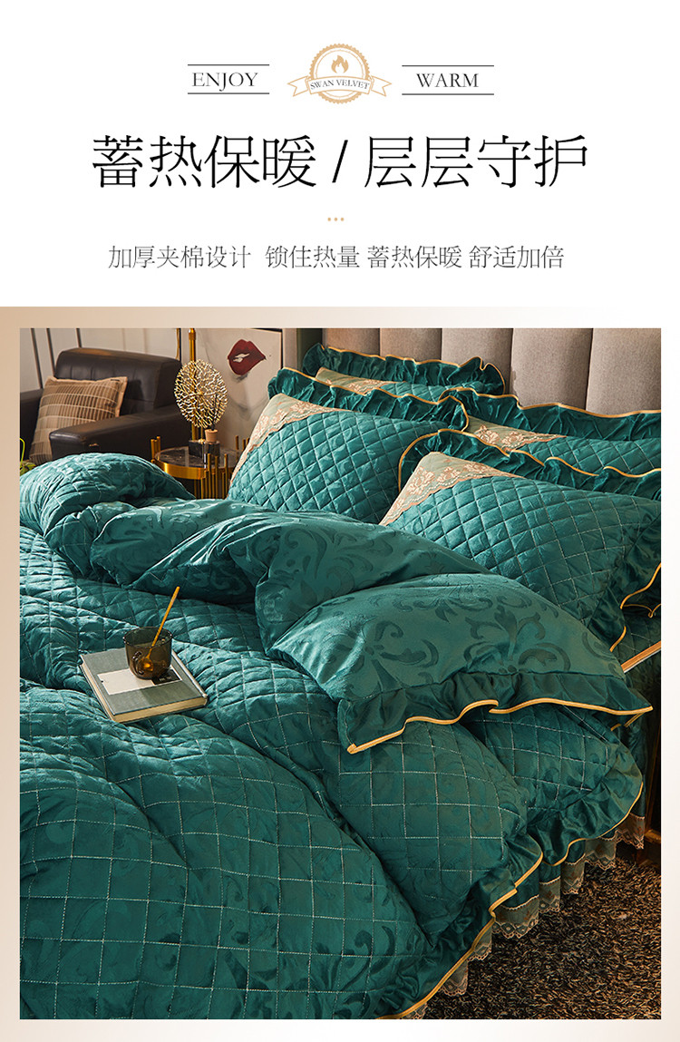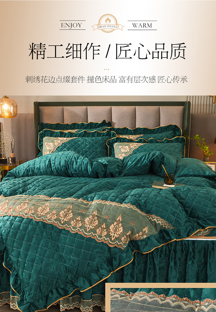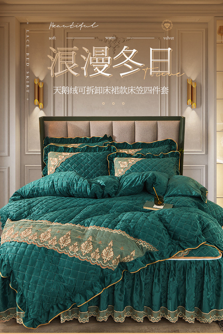 当前位置: 91家纺网 > 商品网购 > 床品套件 > 四件套 > 天鹅绒四件套 > 网红馆 2025新品天鹅绒夹棉床裙四件套 幻城巴黎 翡翠