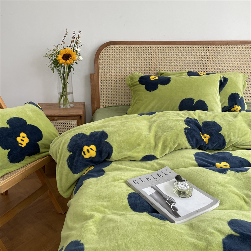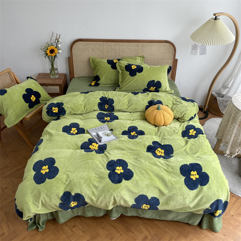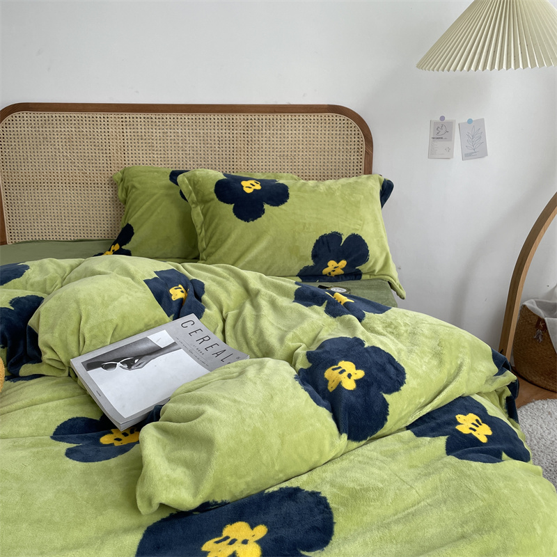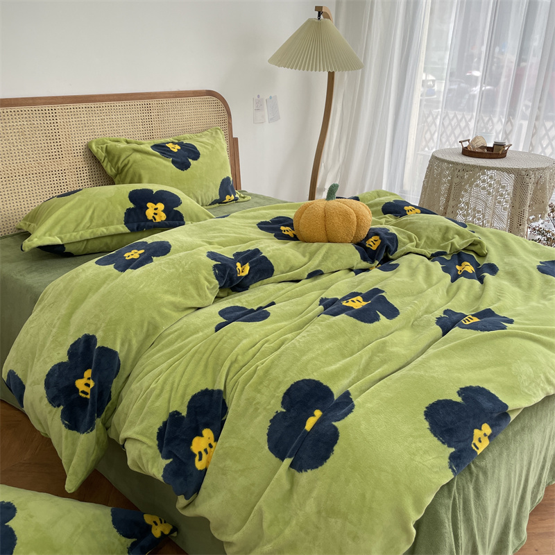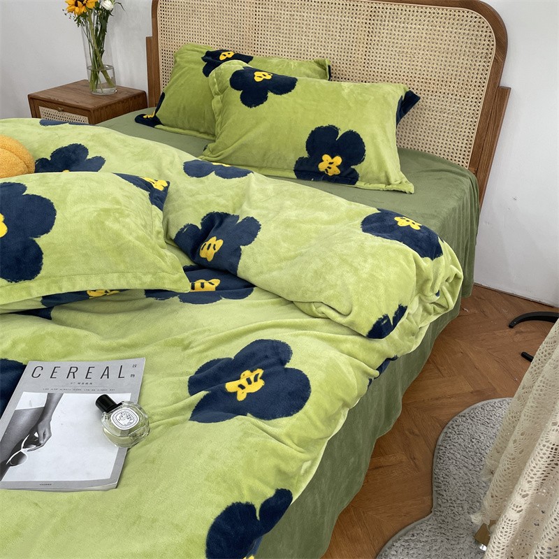 源启生活 2022新款230g全消光高克重牛奶绒四件套 绿怡