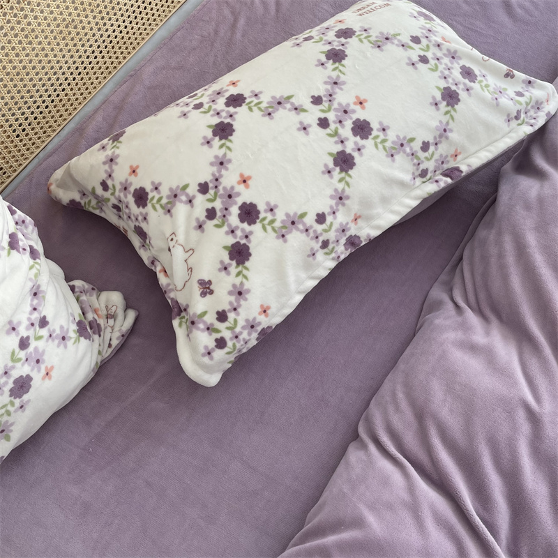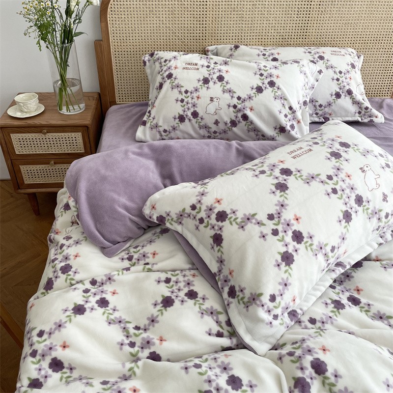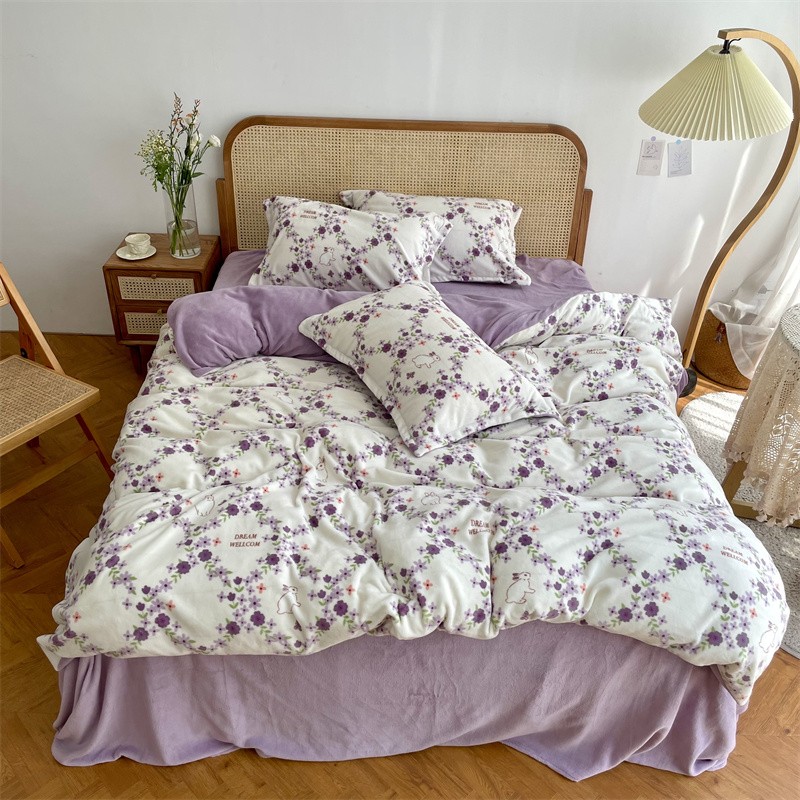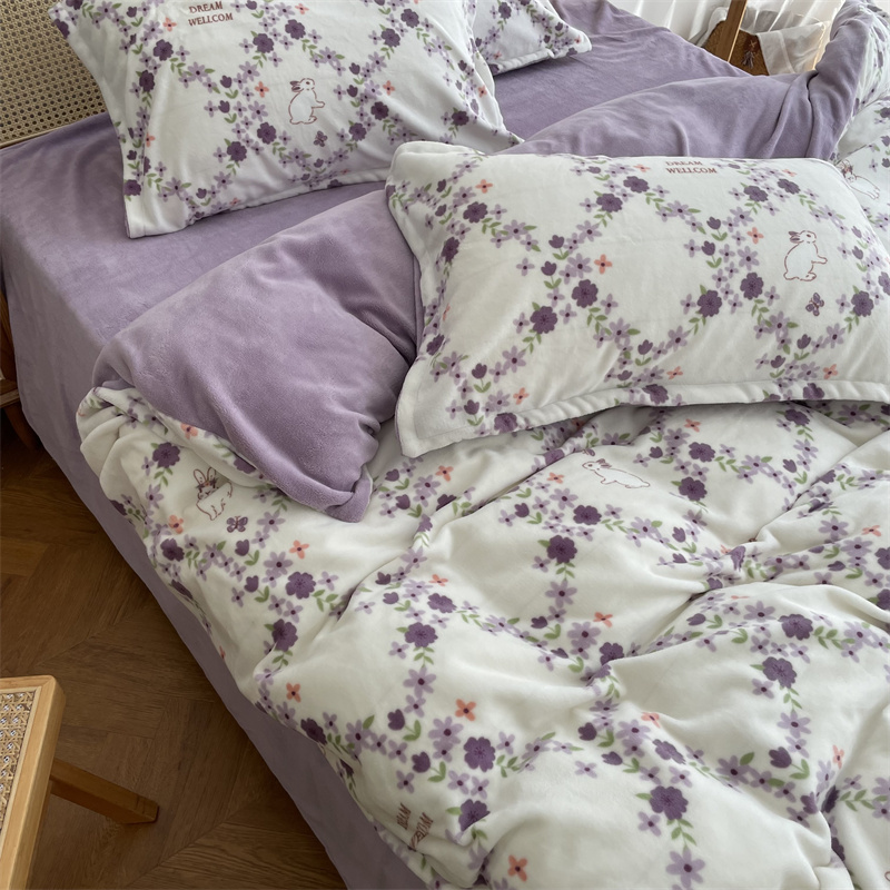 源启生活 2022新款230g全消光高克重牛奶绒四件套 紫韵
