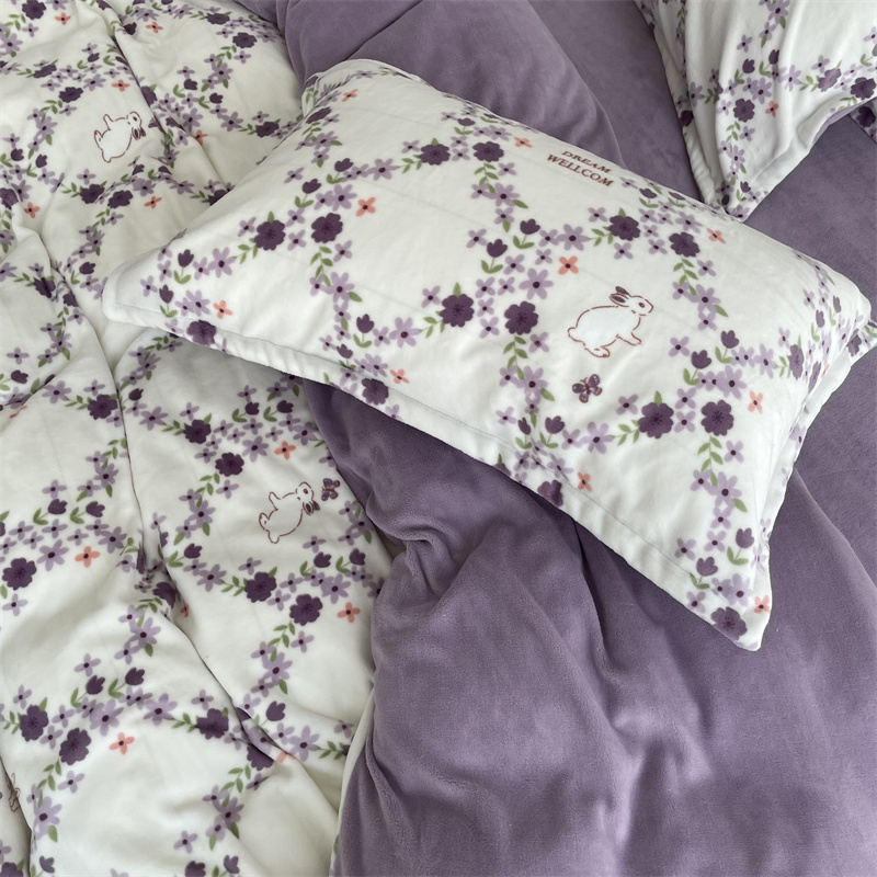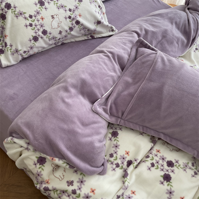 商品名称:源启生活 2022新款230g全消光高克重牛奶绒四件套 紫韵