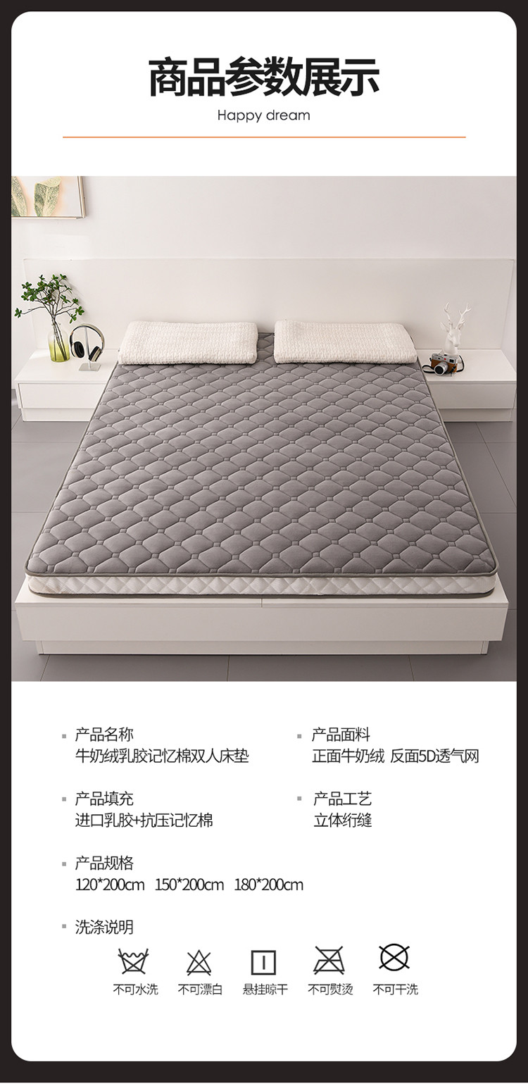当前位置: 91家纺网 > 商品网购 > 床垫/床褥/床护垫 > 普通床垫 > 亿丁点 2023新款牛奶绒乳胶记忆棉双人床垫 大床灰色