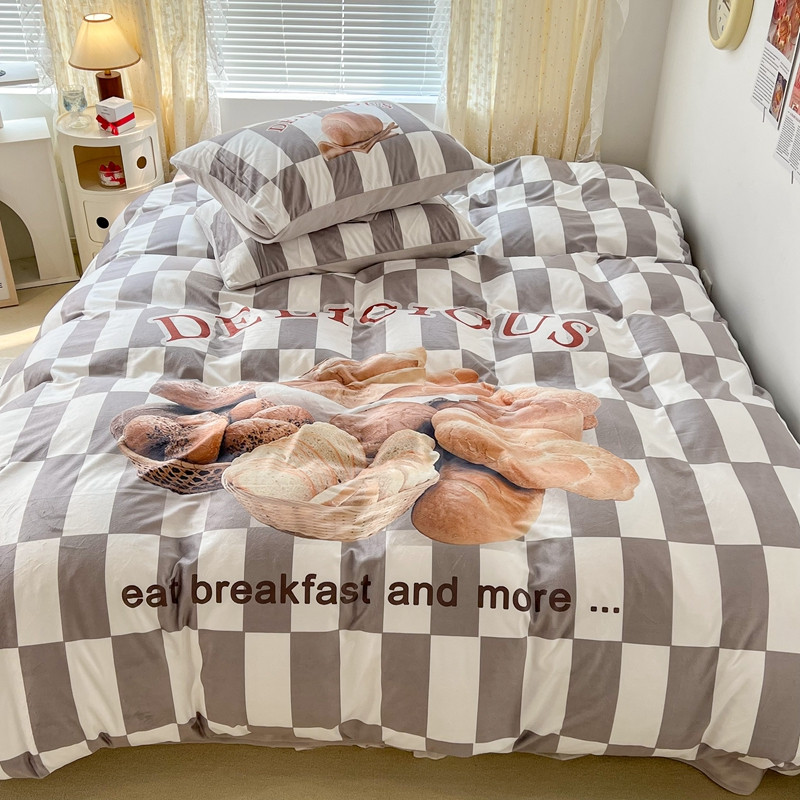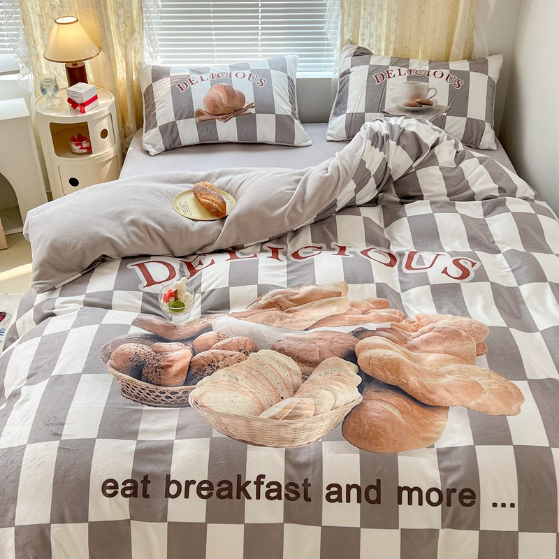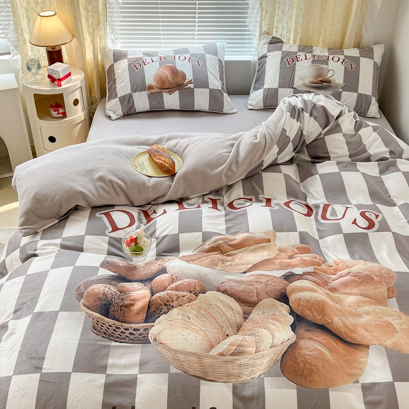 昔可 2022新款大版数码印花牛奶绒四件套 早餐面包