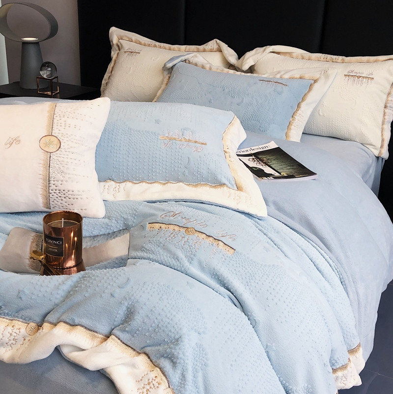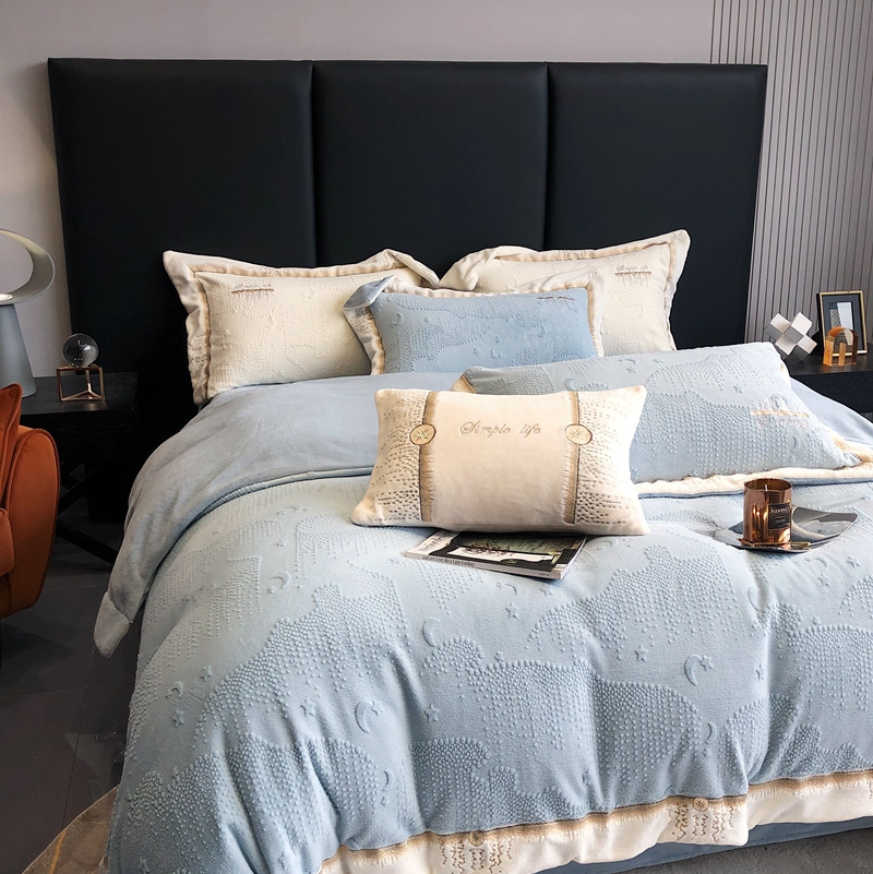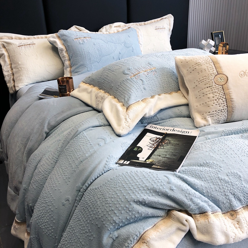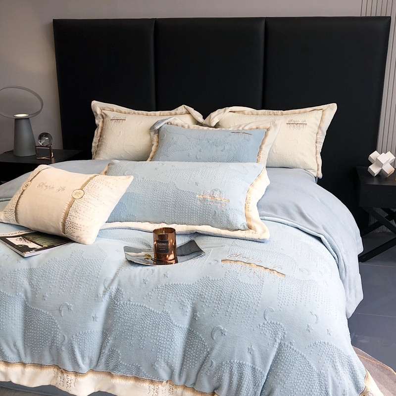 商品名称:馨蕊 2022新款秋冬轻奢煦暖绒系列四件套-星月 星月-北卡蓝