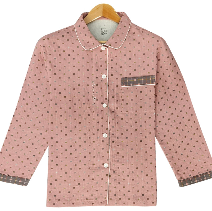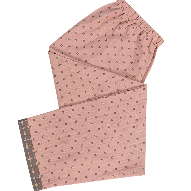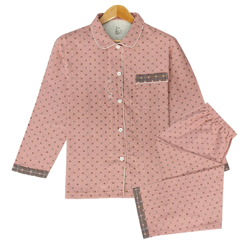 皇寝世家2023新款嵌线纯棉双层纱长袖长裤家居服套装812女-布丁格粉