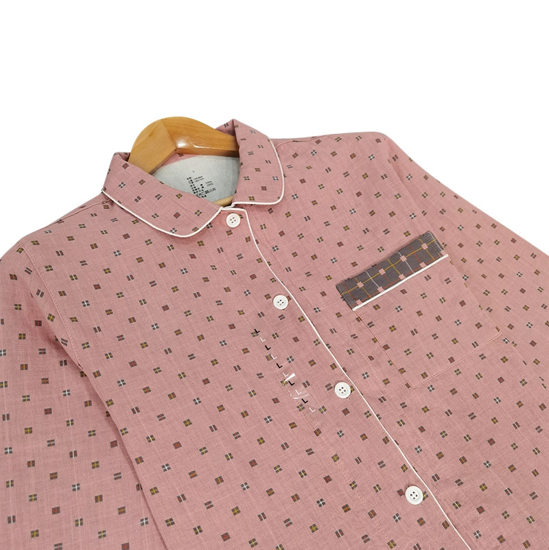 (总)皇寝世家 2023新款纯棉双层纱短袖长裤家居服套装,804男-灰细格,805女-粉细格,805女-黄细格,805女-绿细格