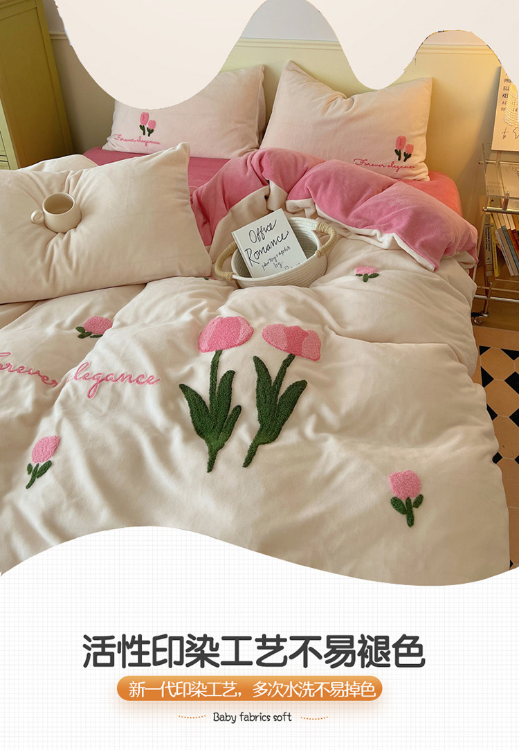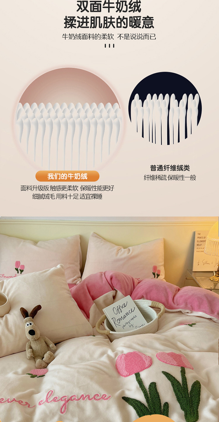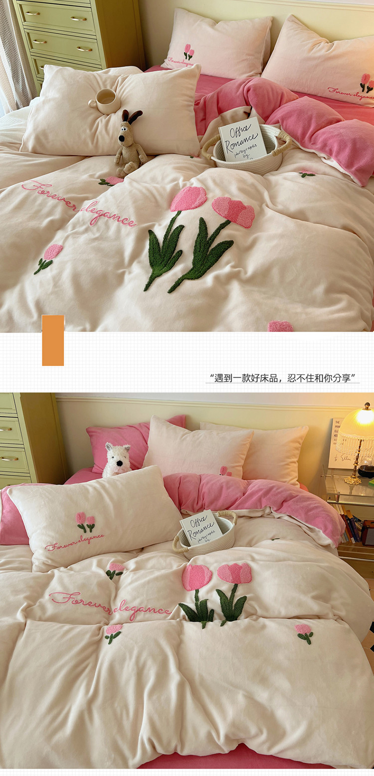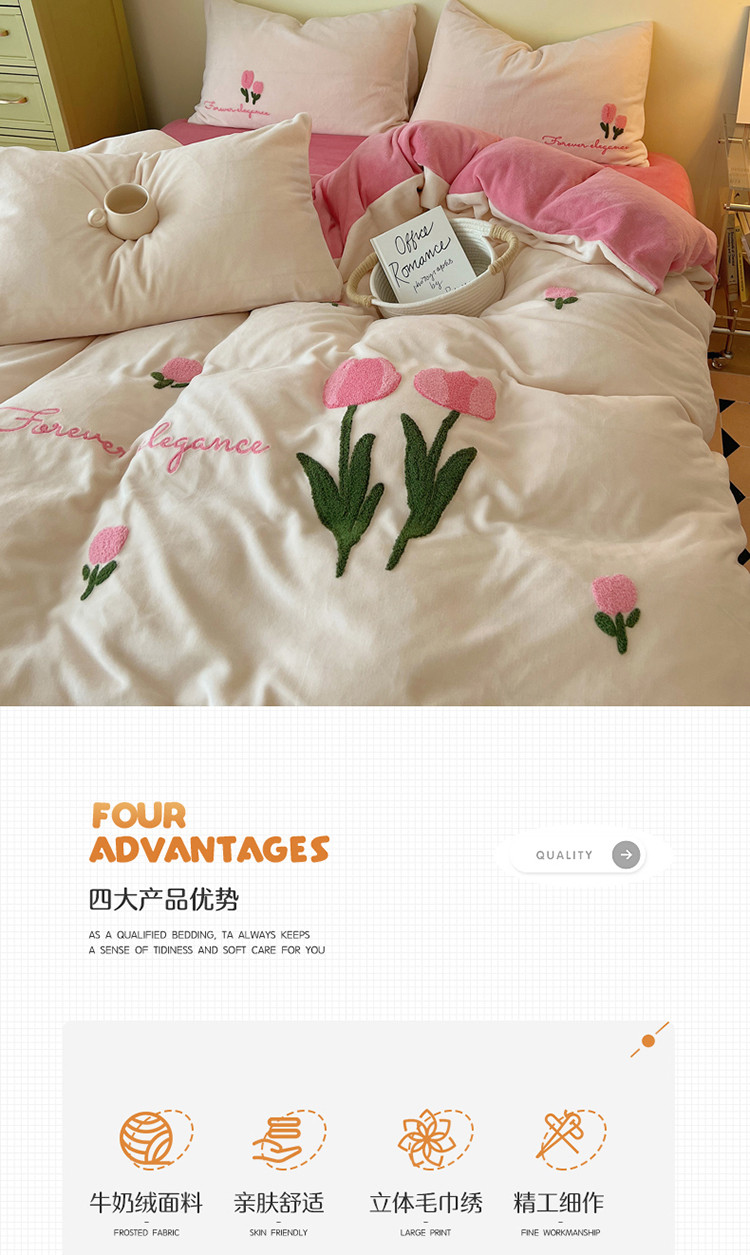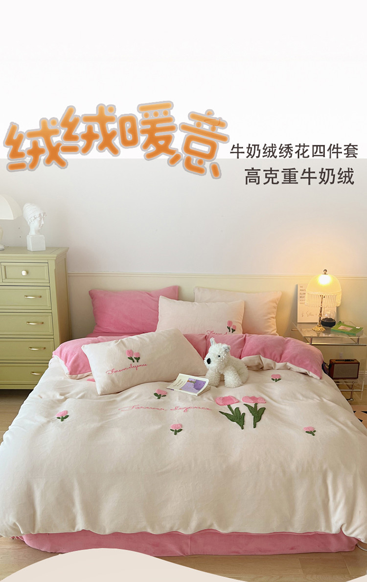 三朵 2022新款牛奶绒绣花四件套-场景二 郁金香布鲁蓝