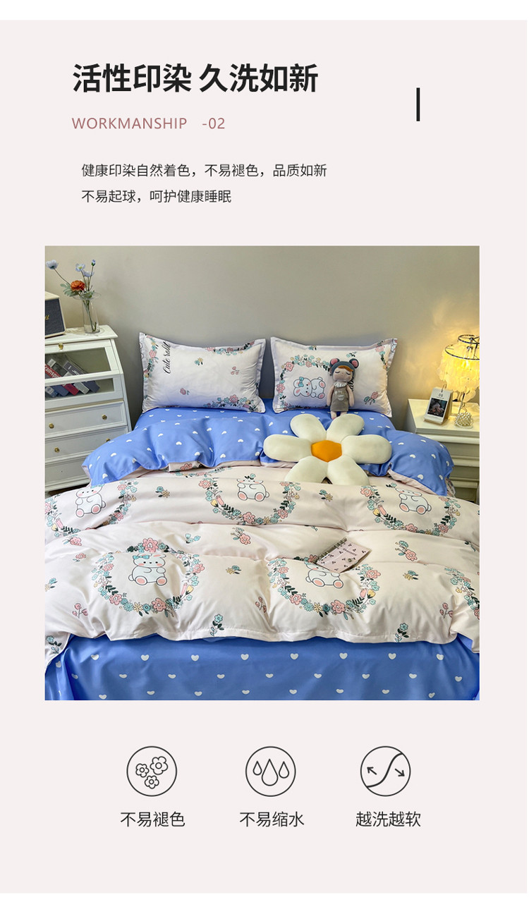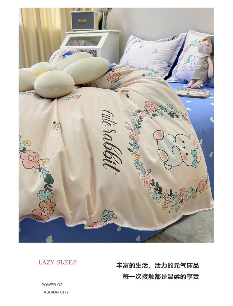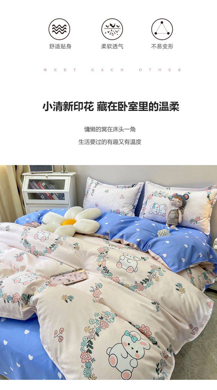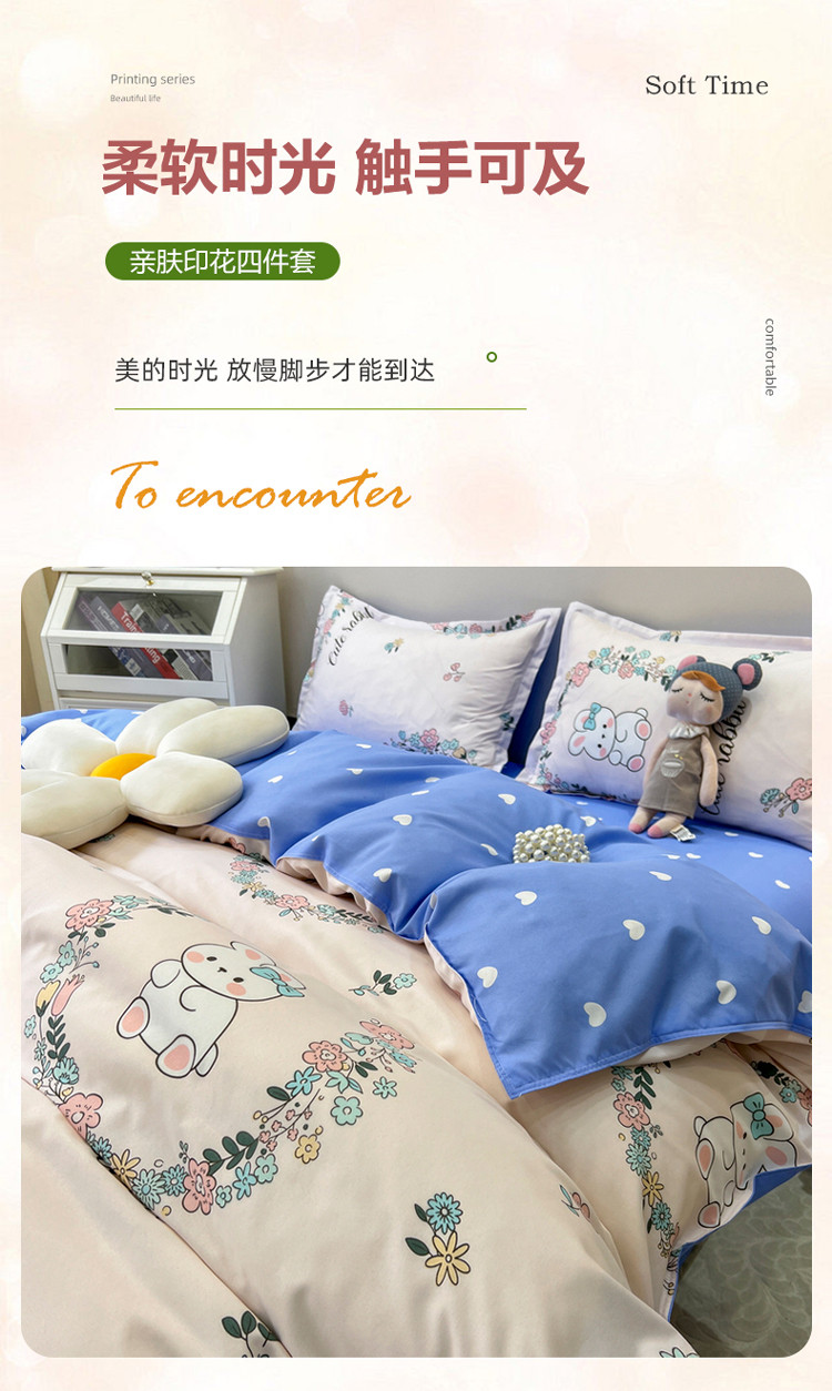 宏源 2022新款芦荟棉亲肤印花四件套10月新花型 花环小兔