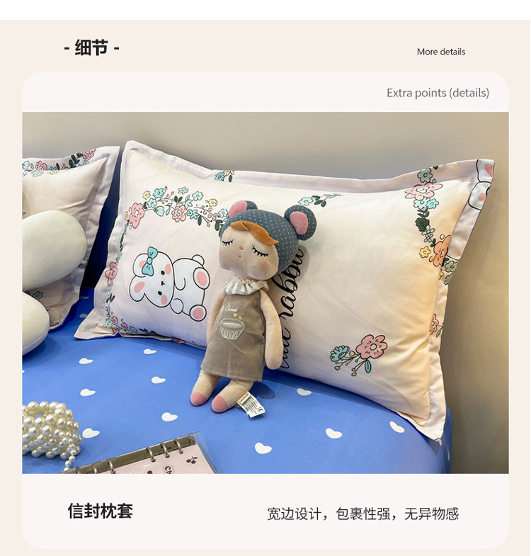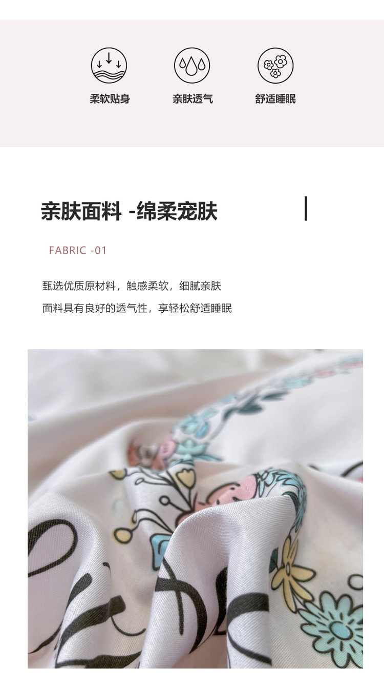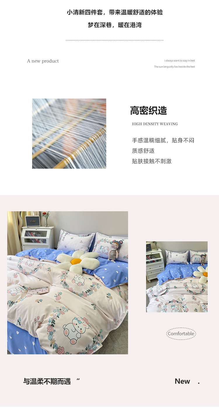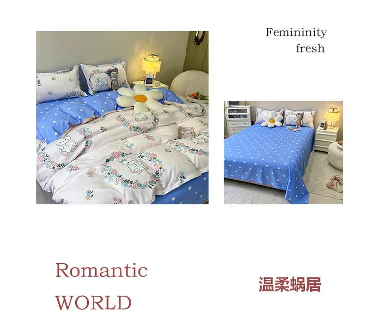 宏源 2022新款芦荟棉亲肤印花四件套10月新花型 花环小兔