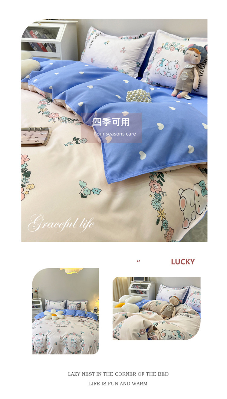 (总)宏源家纺 2025新款芦荟棉印花亲肤四件套,花园熊,快乐玩伴,萌萌猫粉,萌萌猫灰,甜品派对-蓝,甜品派对-玉,小猫日记,小新灰,小新蓝,熊仔仔