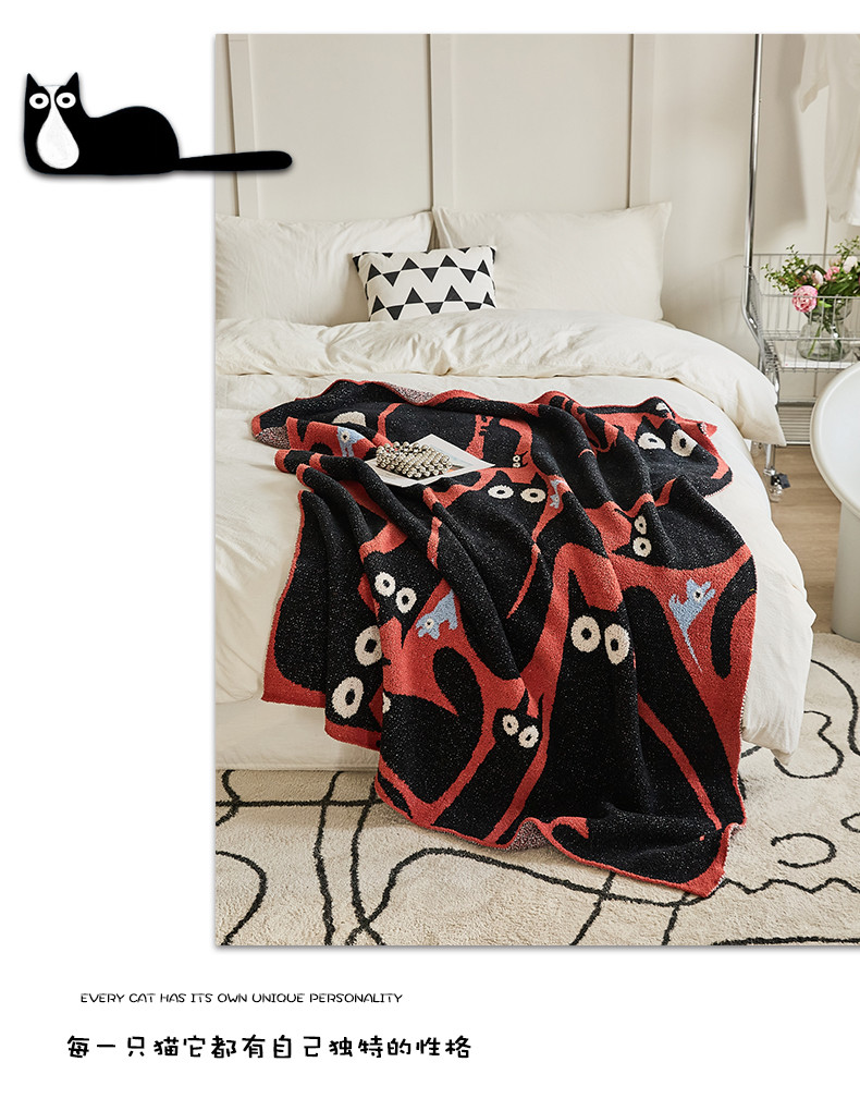暖绵绵 新款半边绒毛毯-弯月猫系列 弯月猫-调皮猫