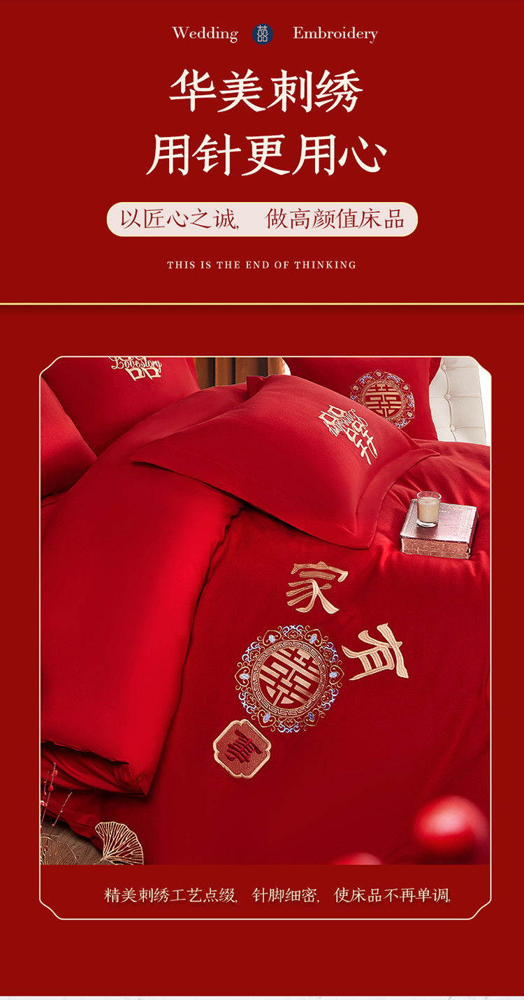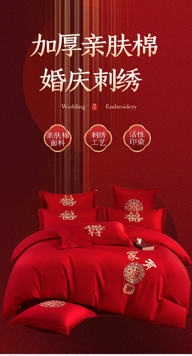 当前位置: 91家纺网 > 商品网购 > 床品套件 > 四件套 > 全棉普通四件套 > 玉雅家纺 2025新款亲肤棉刺绣婚庆四件套 家有喜事