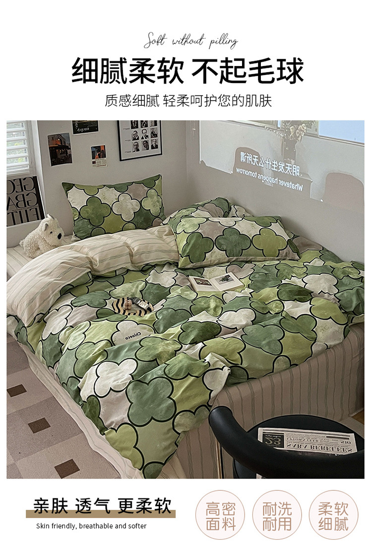 商品名称:金丝鸟家纺 2023新款全棉简约斜纹四件套 四叶草