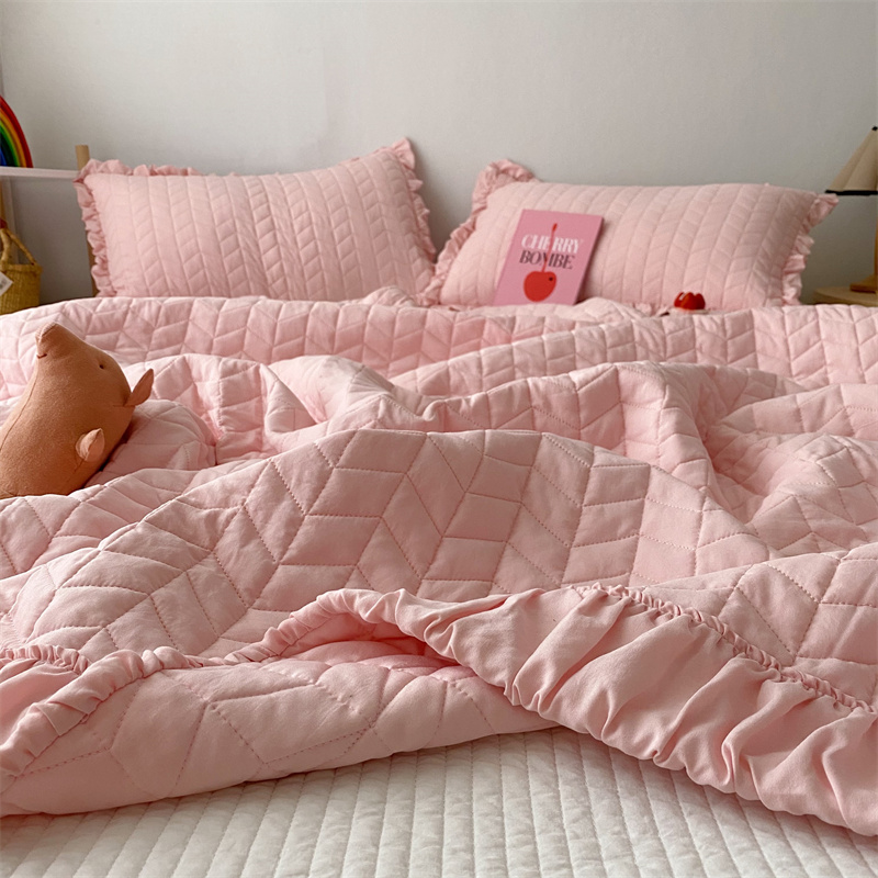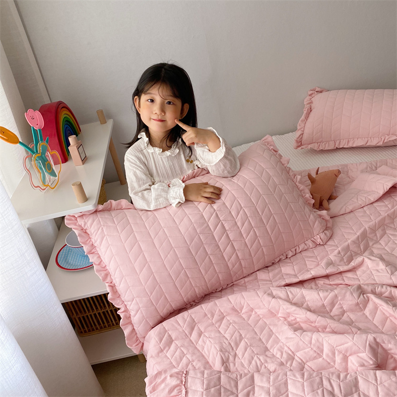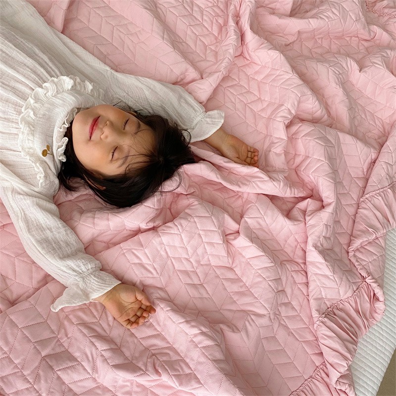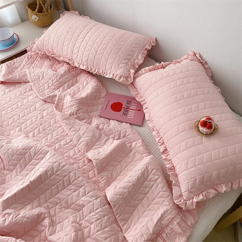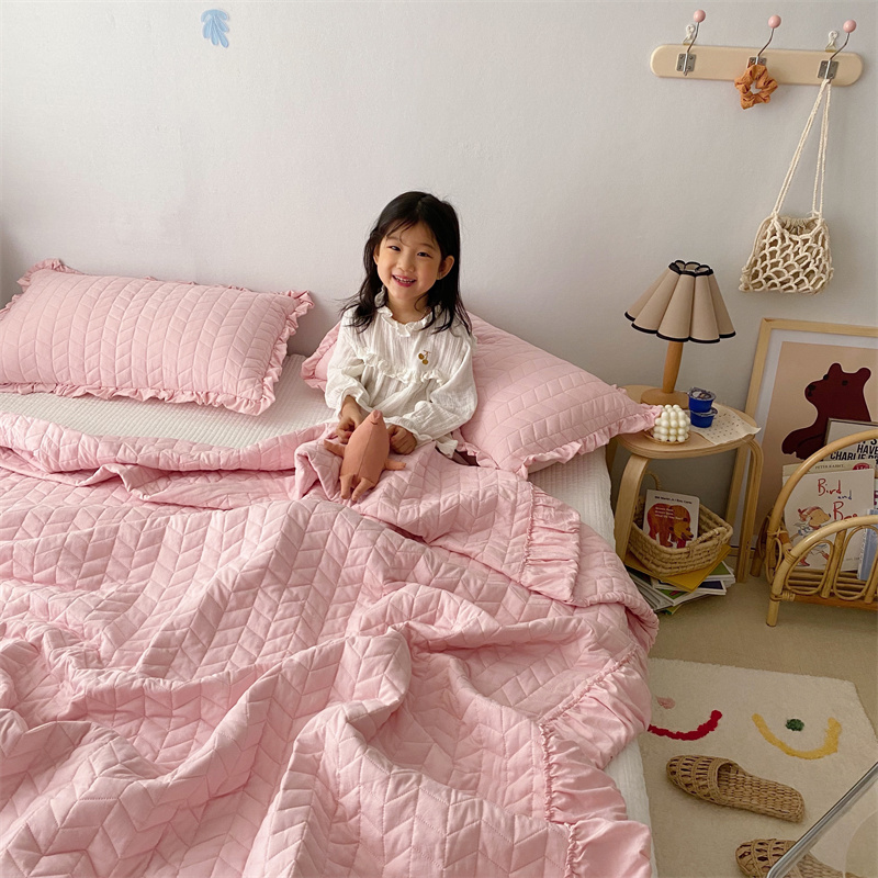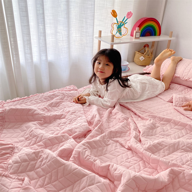 商品名称:乐卧家居 2026新款韩国INS风简约时尚绗缝荷叶边夏被 粉色