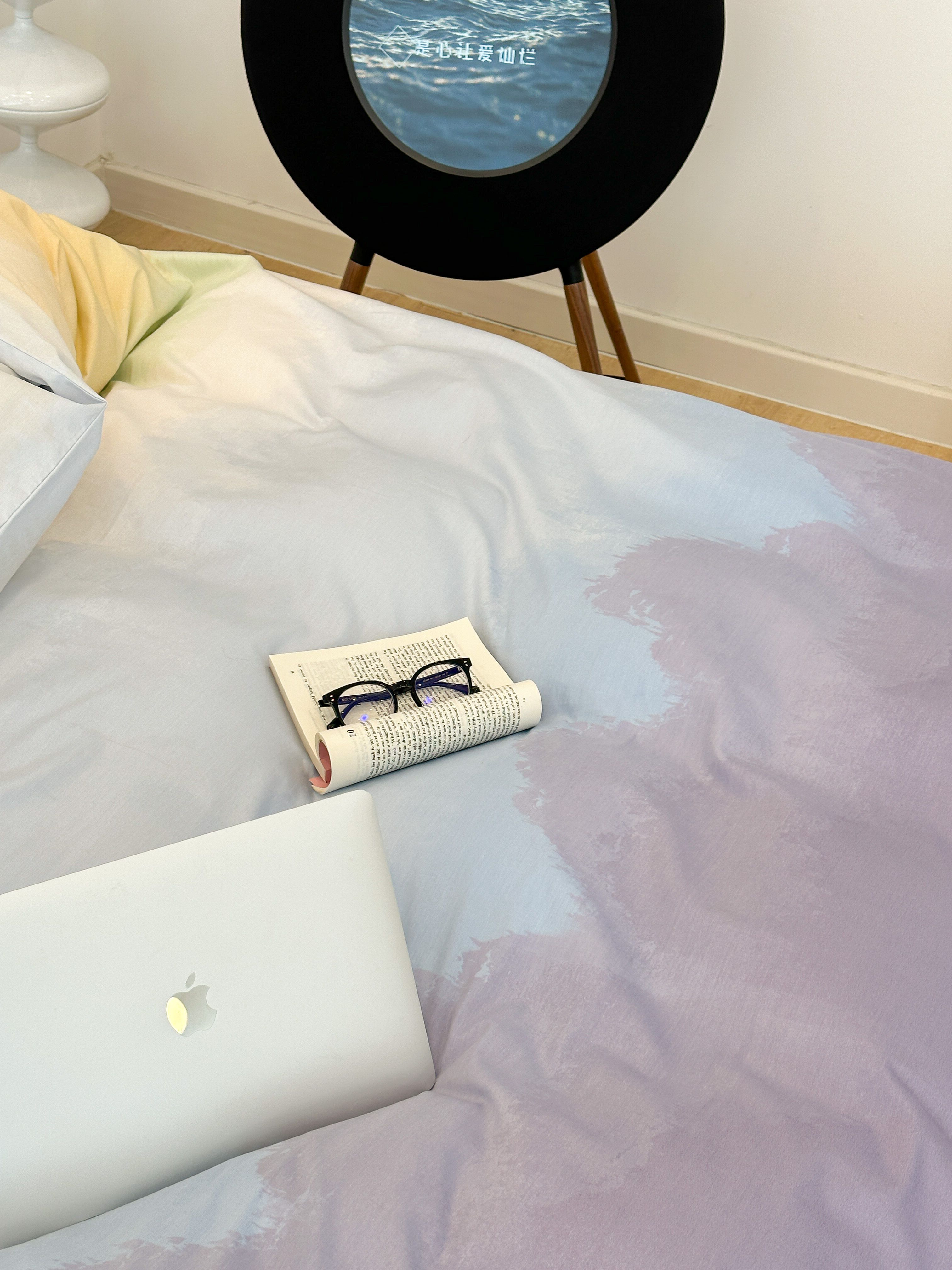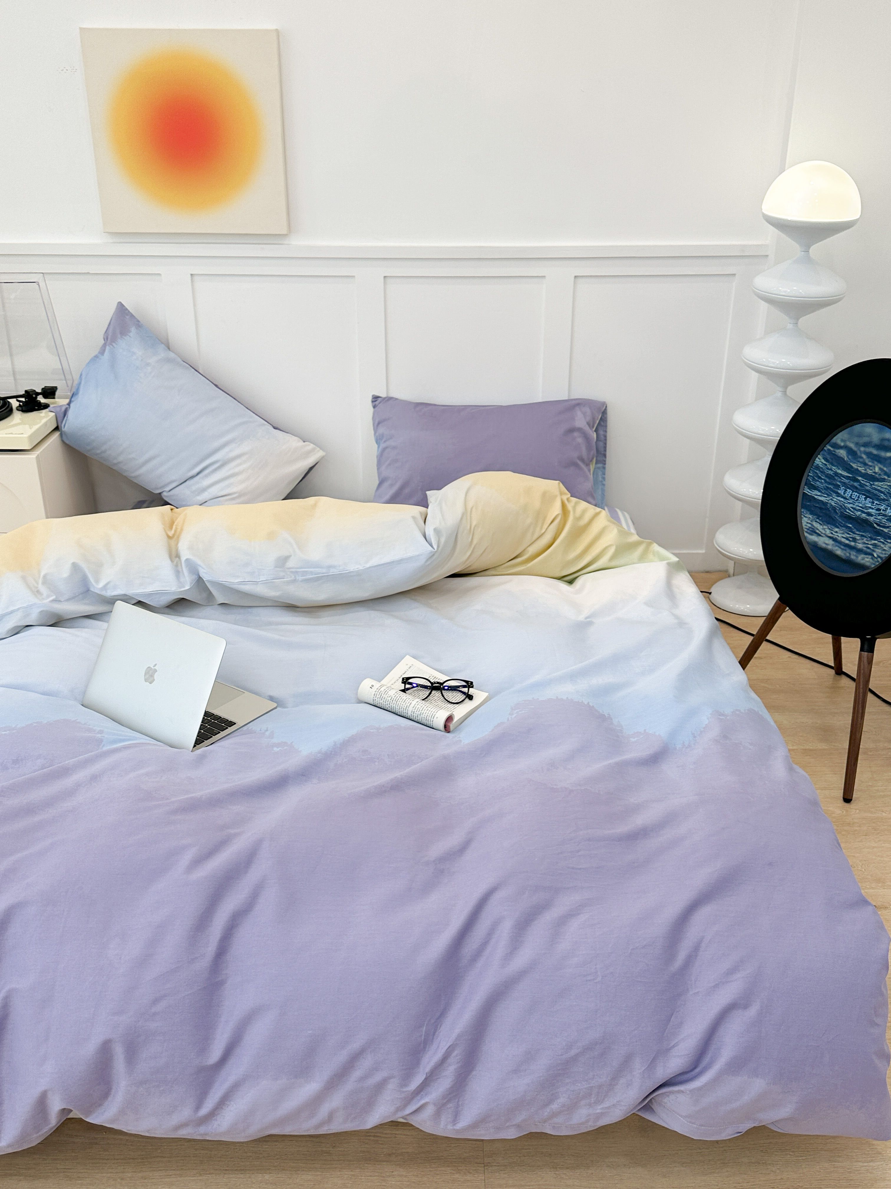 昔可家纺2023新款全棉ins渐变风简约四件套 渐变紫调
