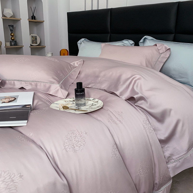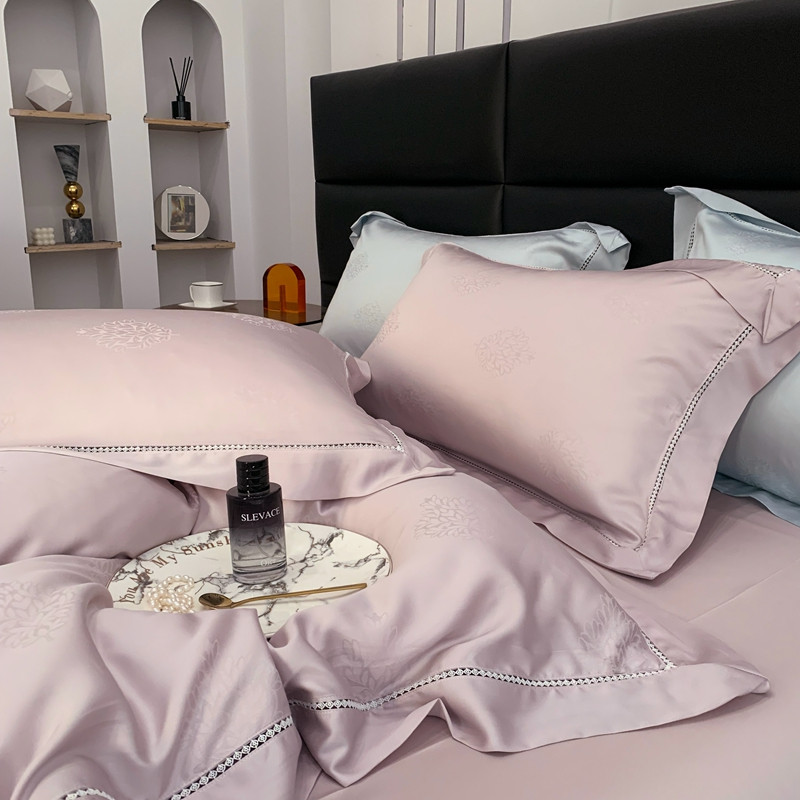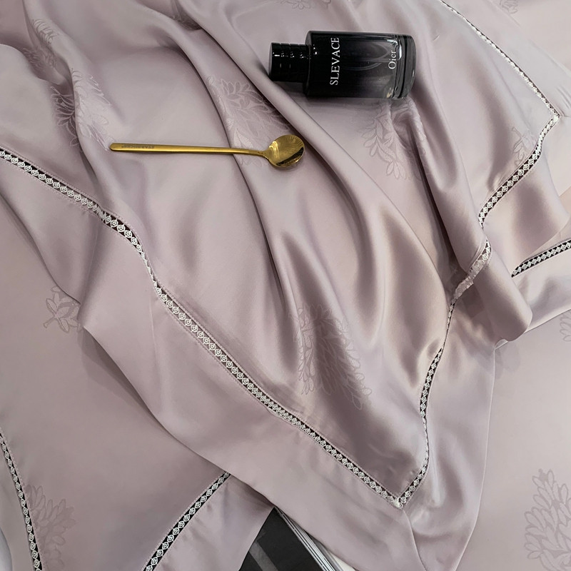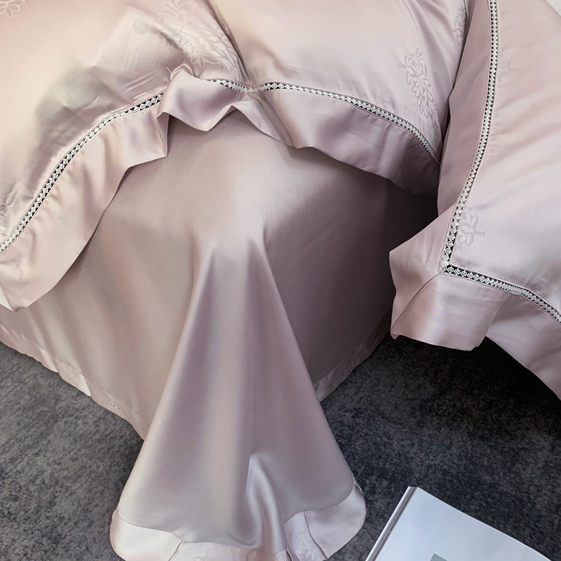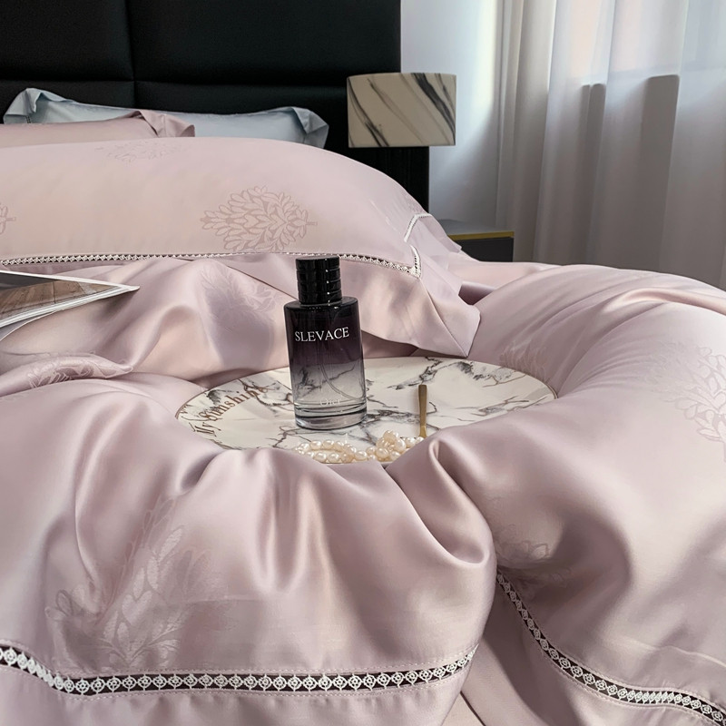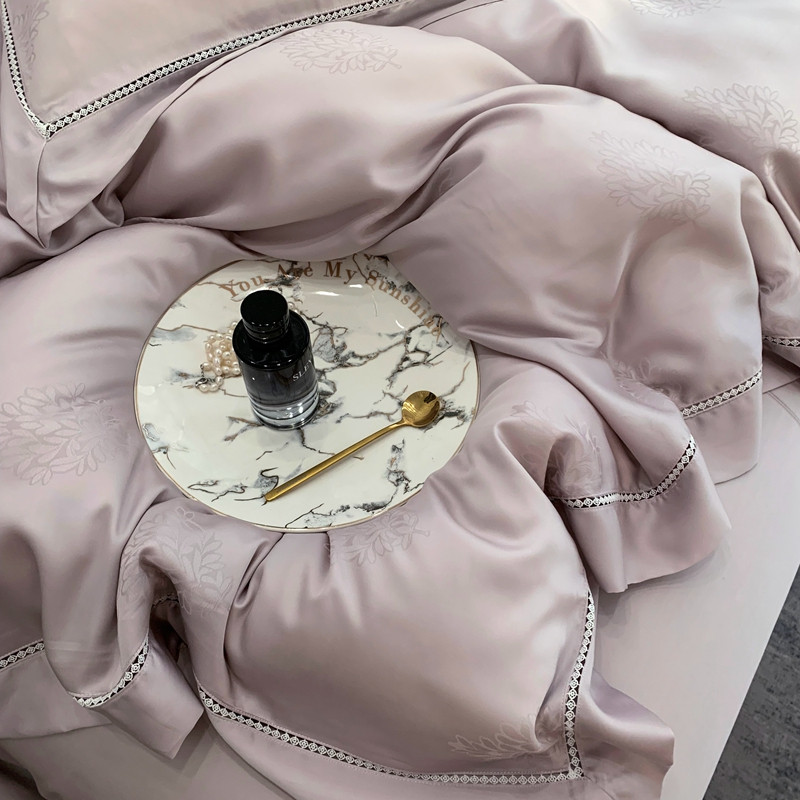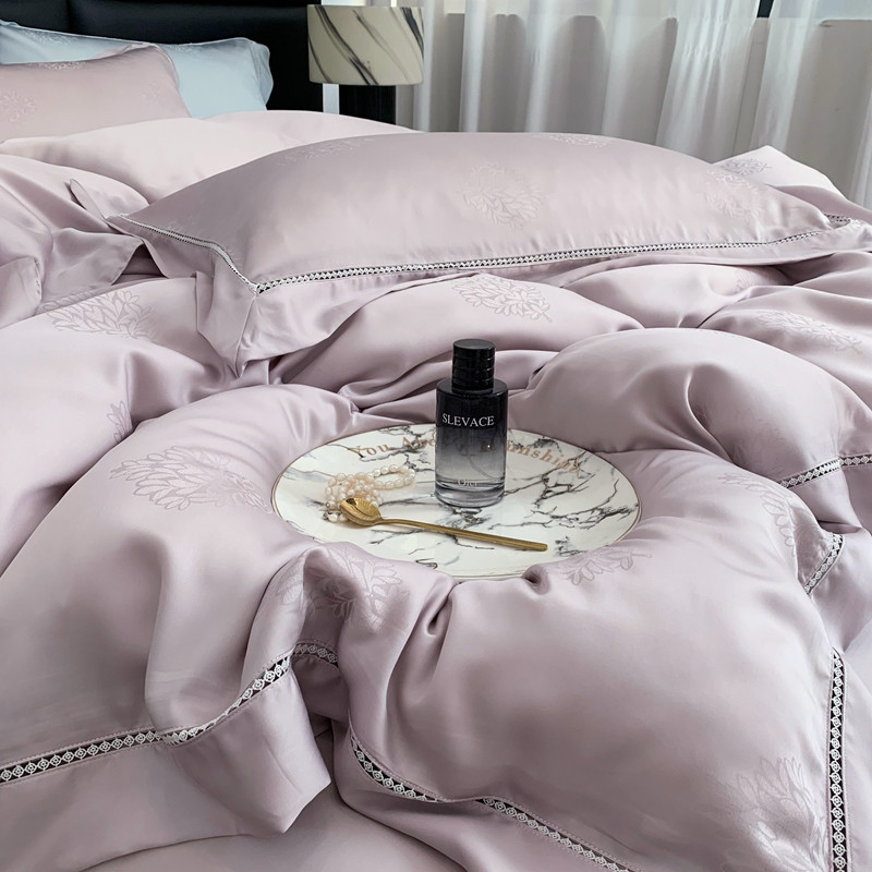 商品名称:顾家家居 2023新款100支提花兰精天丝镂空四件套 瑾禾-紫粉