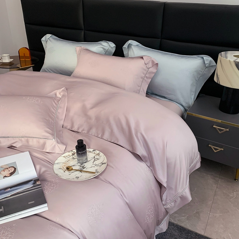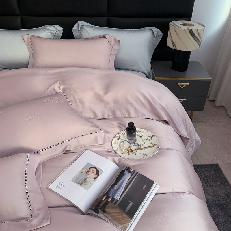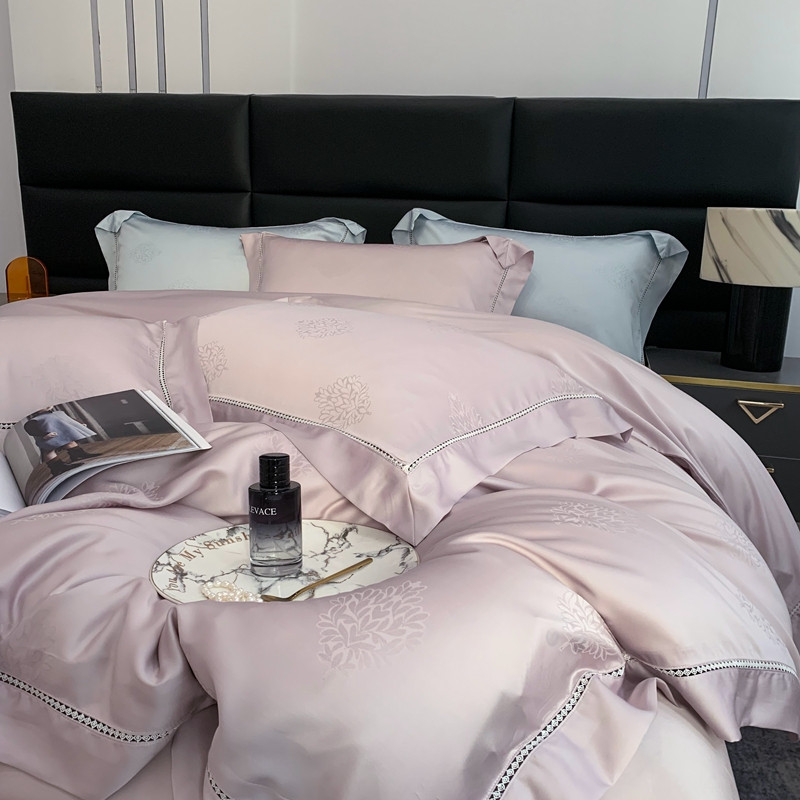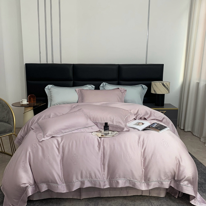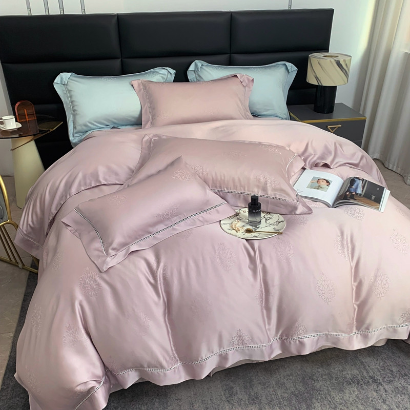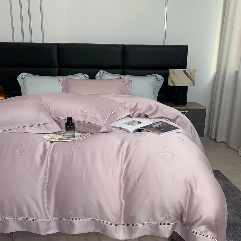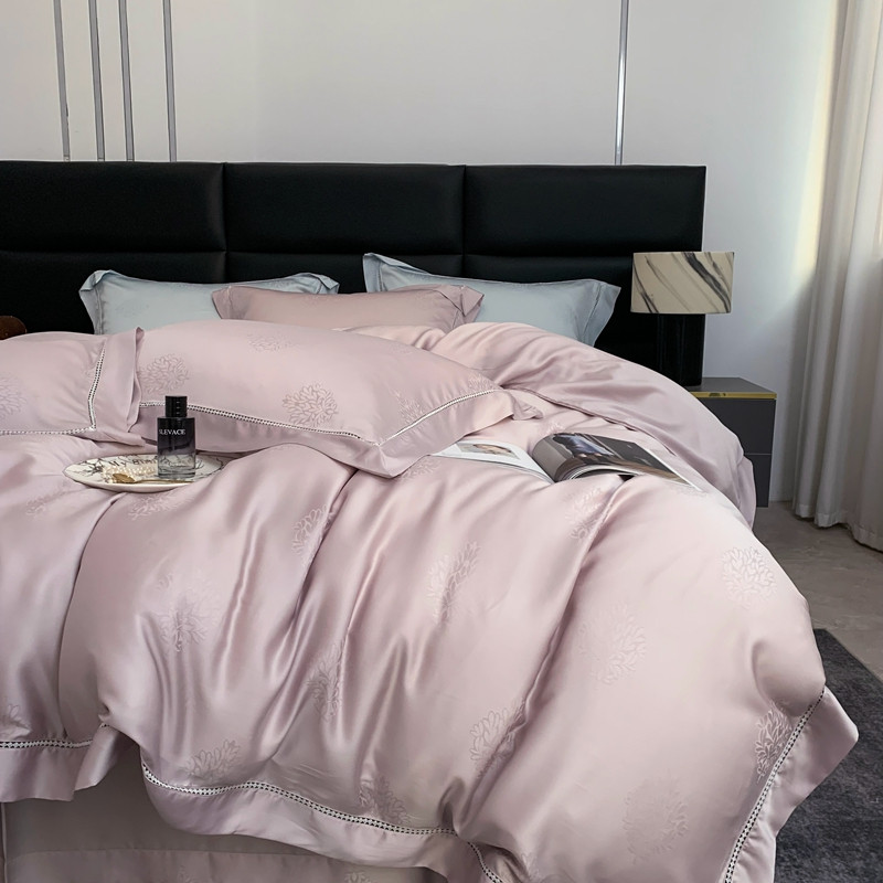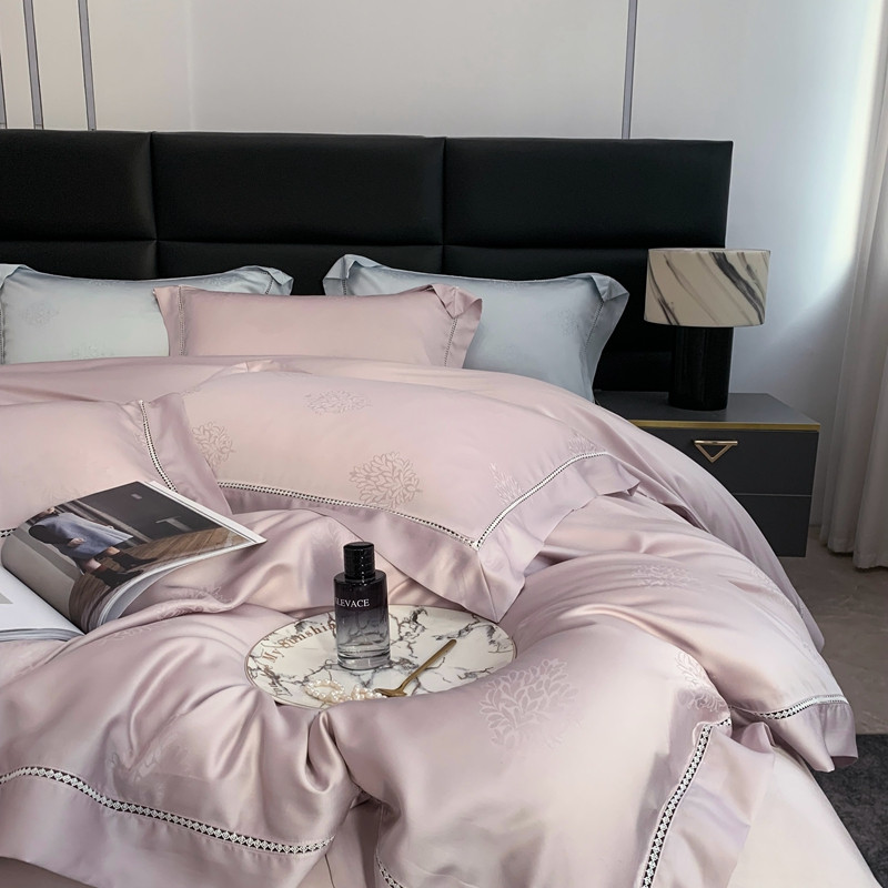 商品名称:顾家家居 2023新款100支提花兰精天丝镂空四件套 瑾禾-紫粉