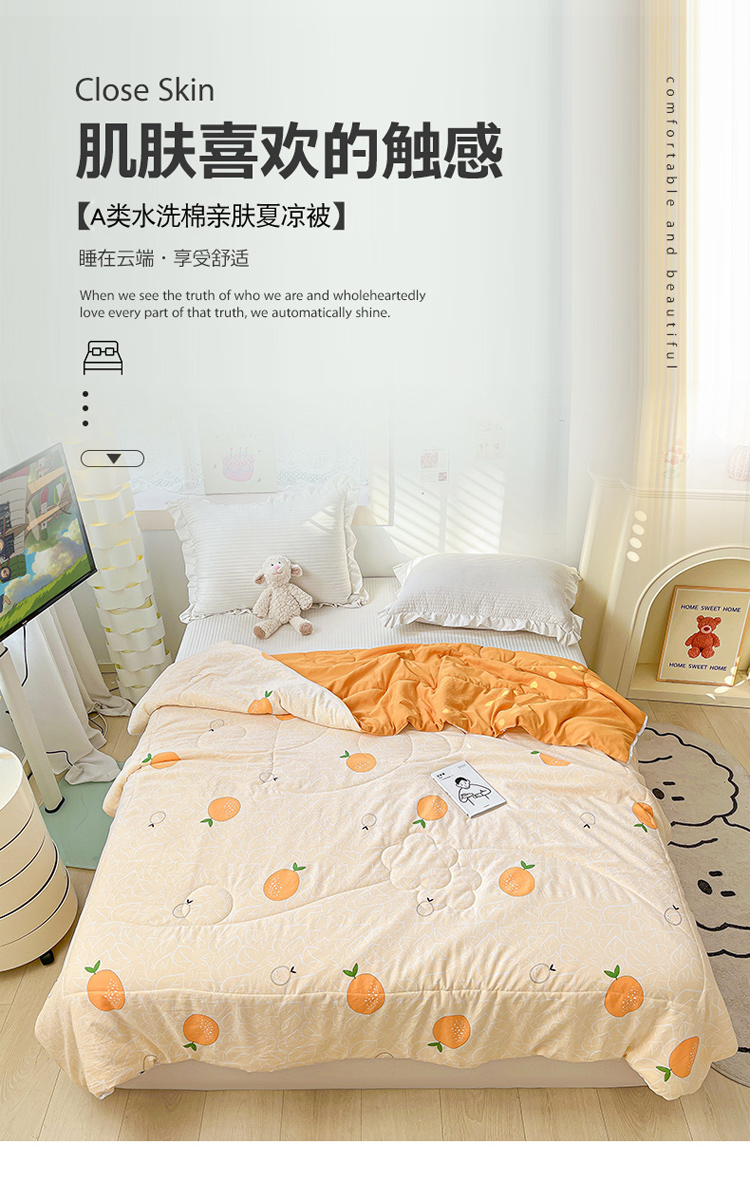 商品名称:寐居 2023新款A类亲肤水洗棉夏凉被 我爱橘子