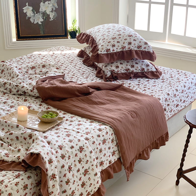 星期八2023款水洗棉麻床盖+枕套+夏被 玫瑰花园