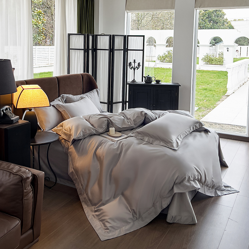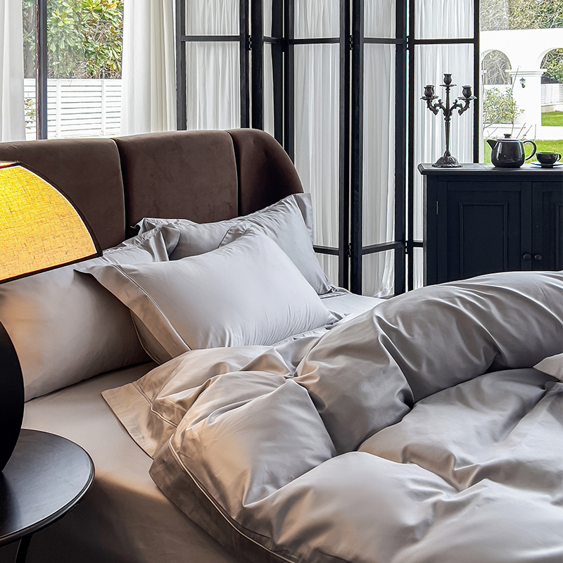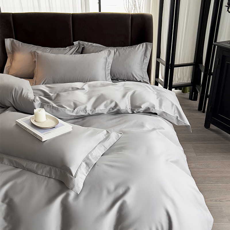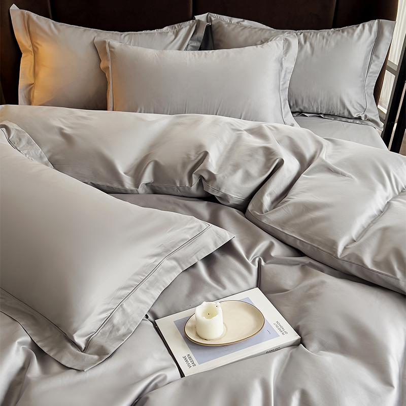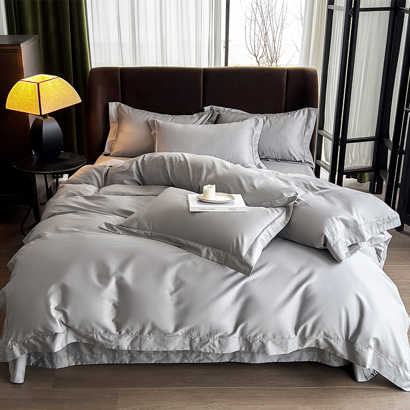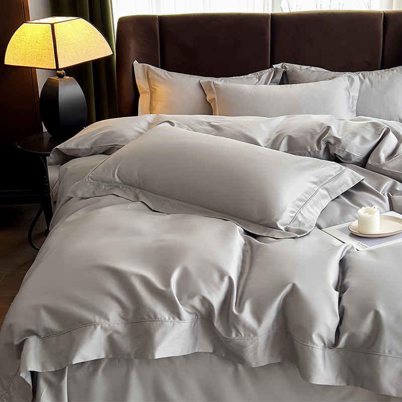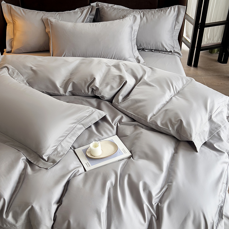 商品名称:嘉悦2023新款50*50S双股长绒棉纯色四件套邂逅-实拍 邂逅-浅灰色