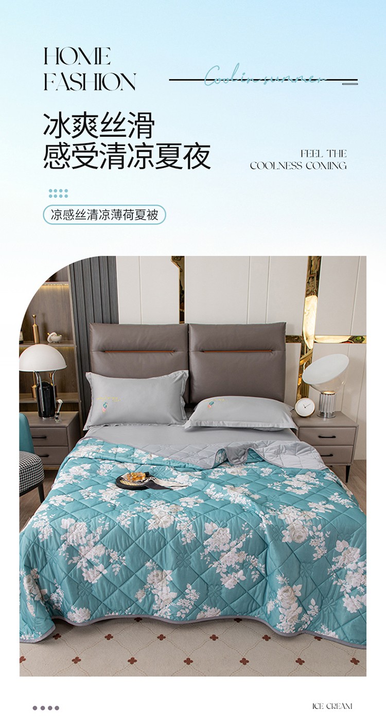 商品名称:安琪 2025新款凉感丝冰淇淋夏被纯色印花空调被直播 花团锦簇