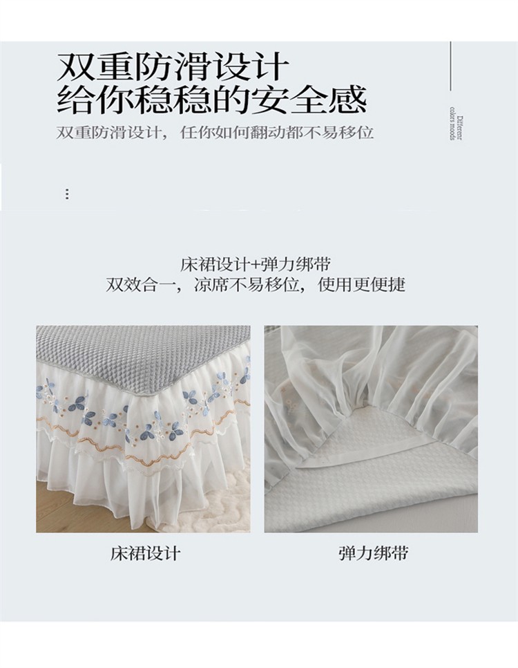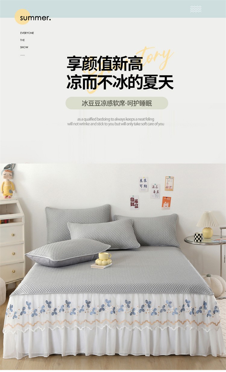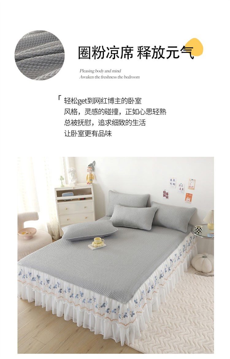 (总)能好家纺 2025新款双层刺绣花边冰豆豆席华夫格pe凉感席凉席,豆沙,灰,咖,蓝,绿