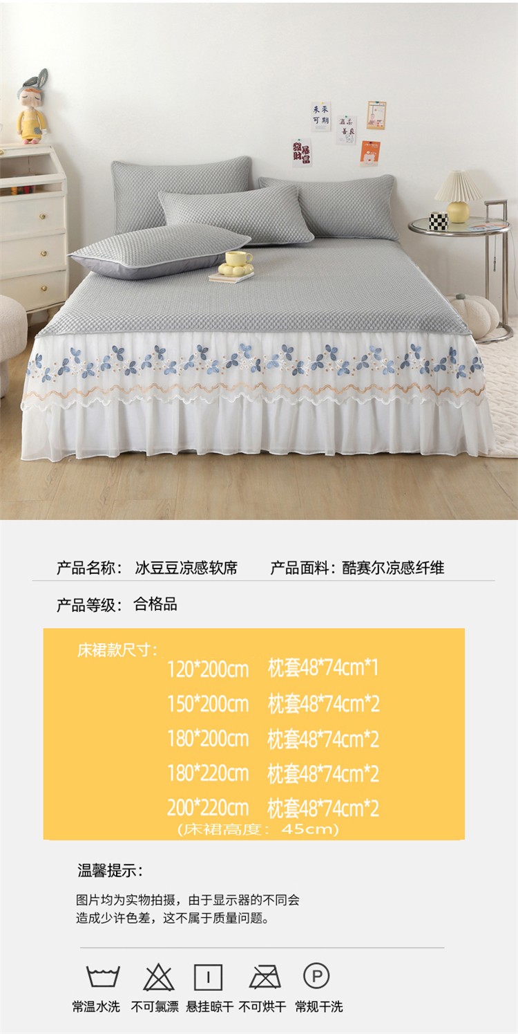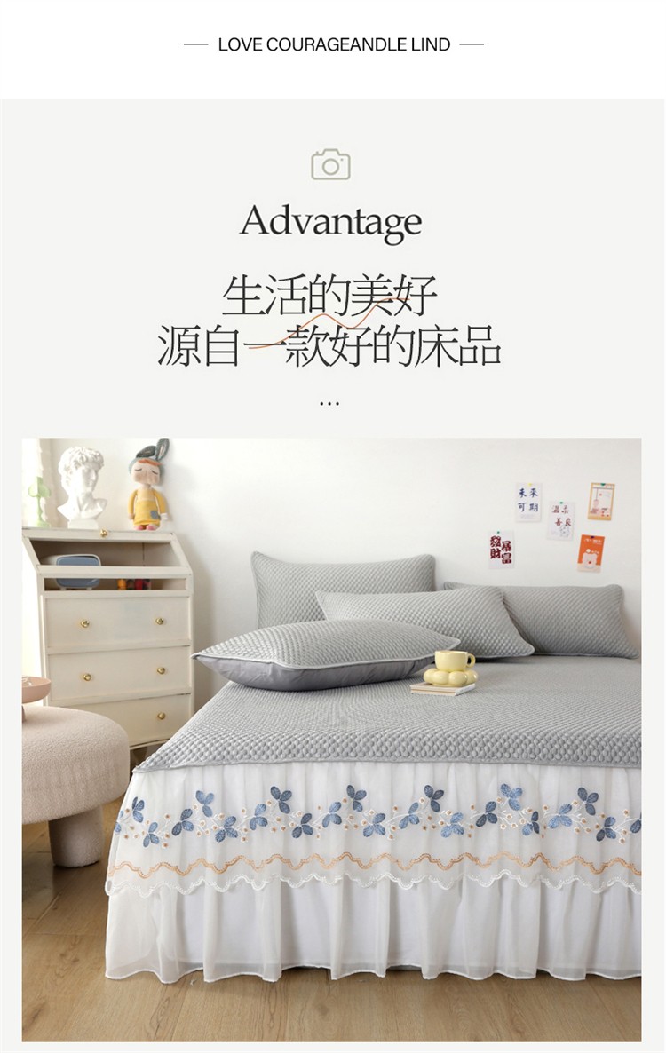 商品名称:能好家纺 2024新款600克全PE材质3D冰豆豆绣花床裙款 绣花 灰
