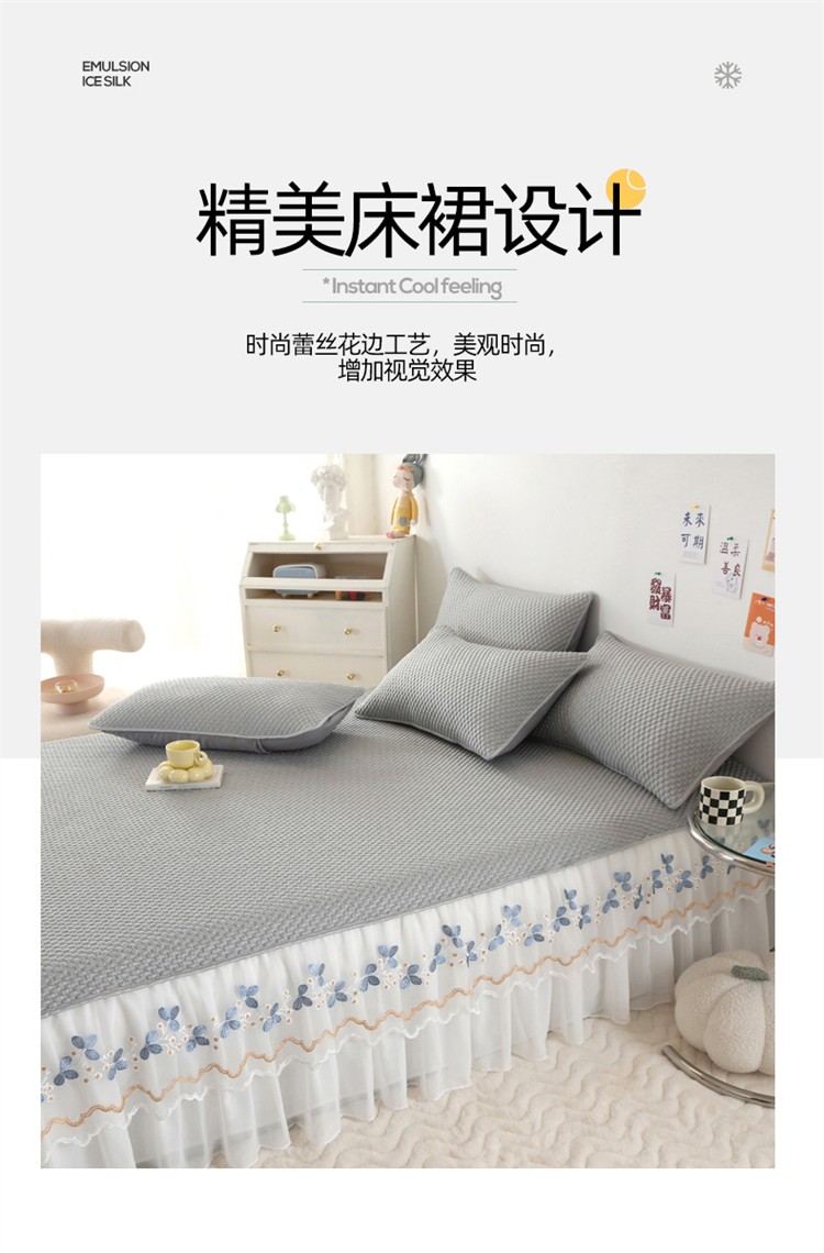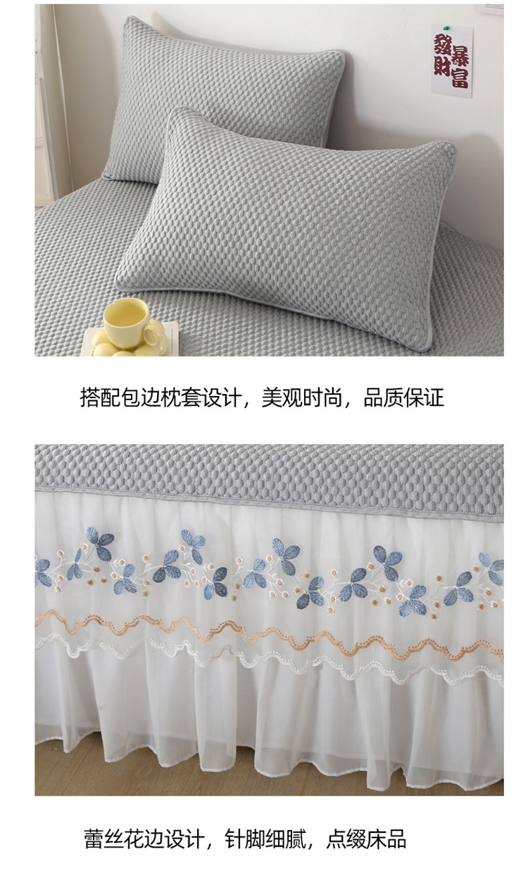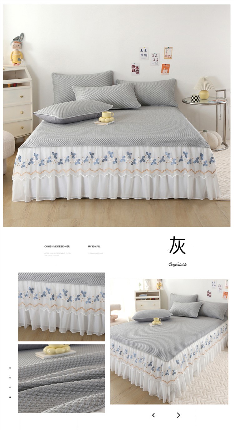 能好家纺 2024新款600克全PE材质3D冰豆豆绣花床裙款 绣花 灰
