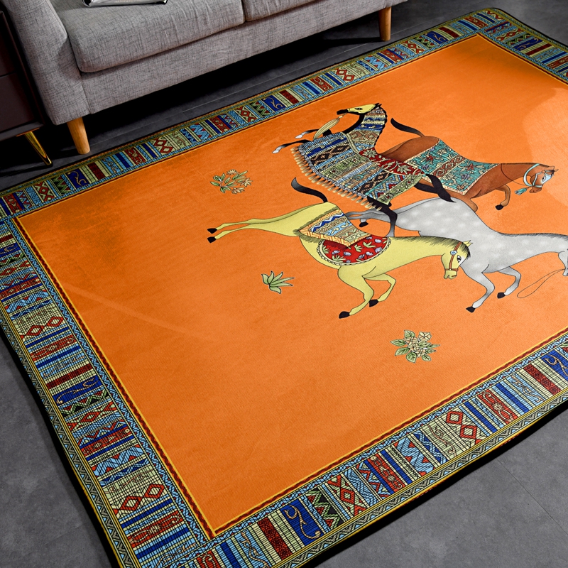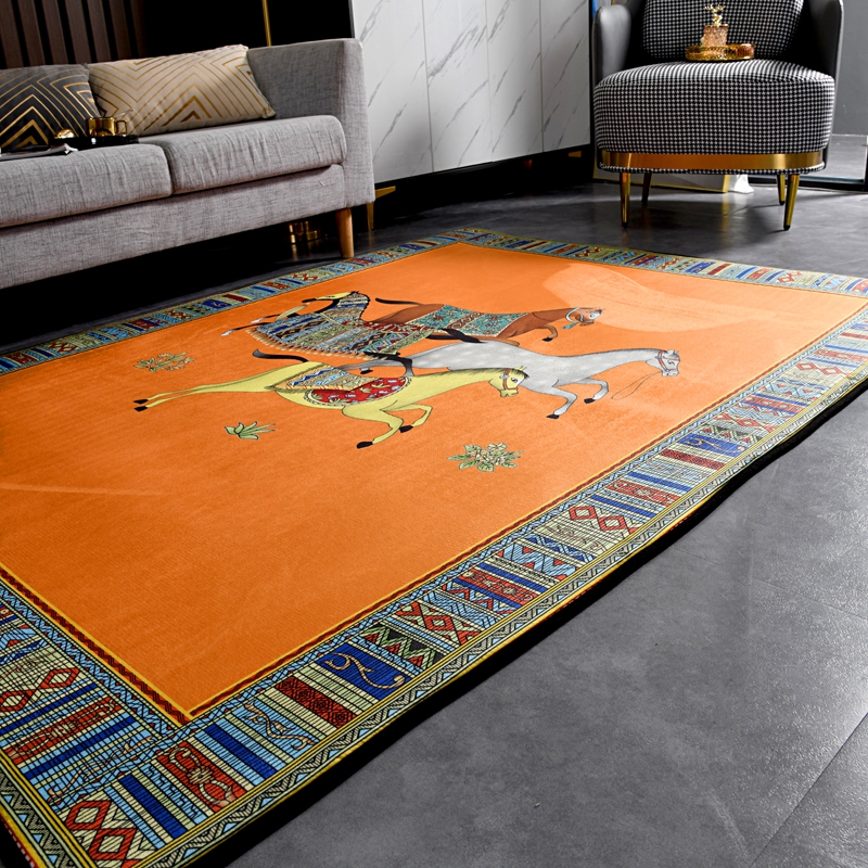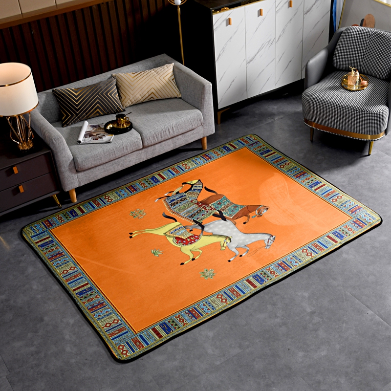 (总)爵仕 2023轻奢大地垫客厅大地毯复古,H 黑,H 灰,H 橘,H 蓝,豹,毕加索黄,布洛克,复古豹,皇家车,皇马,金色盛典,郎世宁,郎世宁 黑,马车,马首,群马,群马黄,群马蓝