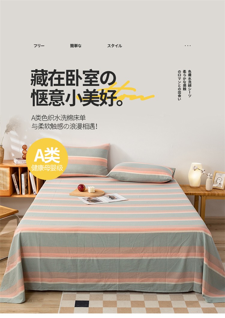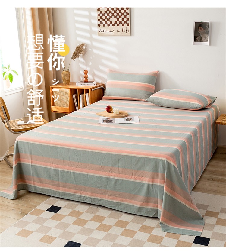 九沐良品 新款A类色织水洗棉床单 嫩绿卡其条