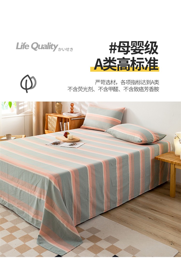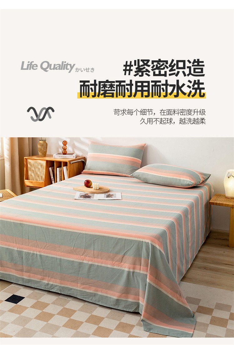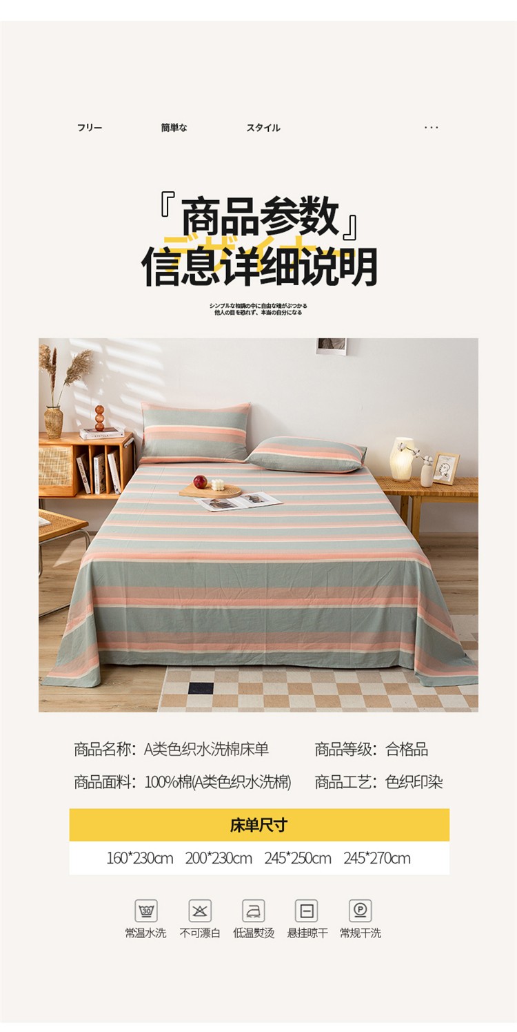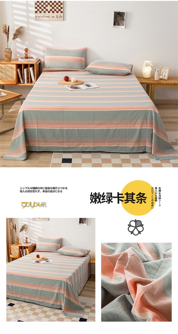 商品名称:九沐良品 新款A类色织水洗棉床单 嫩绿卡其条