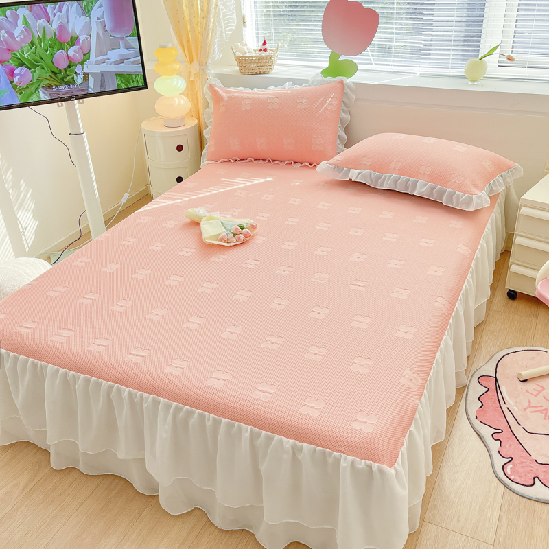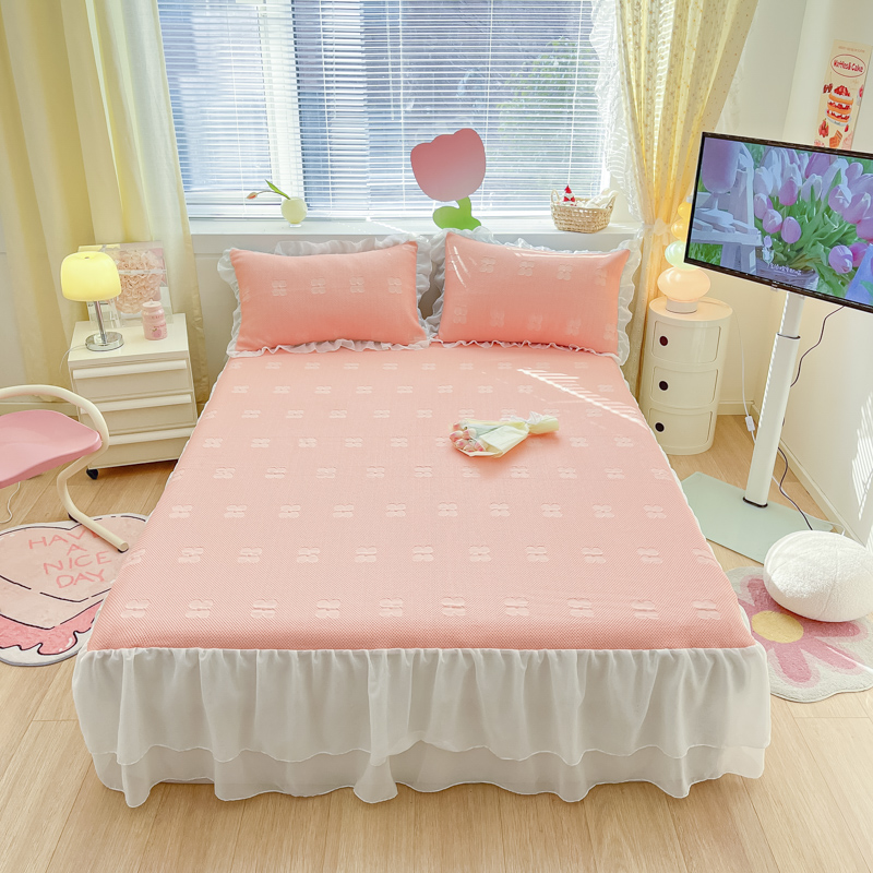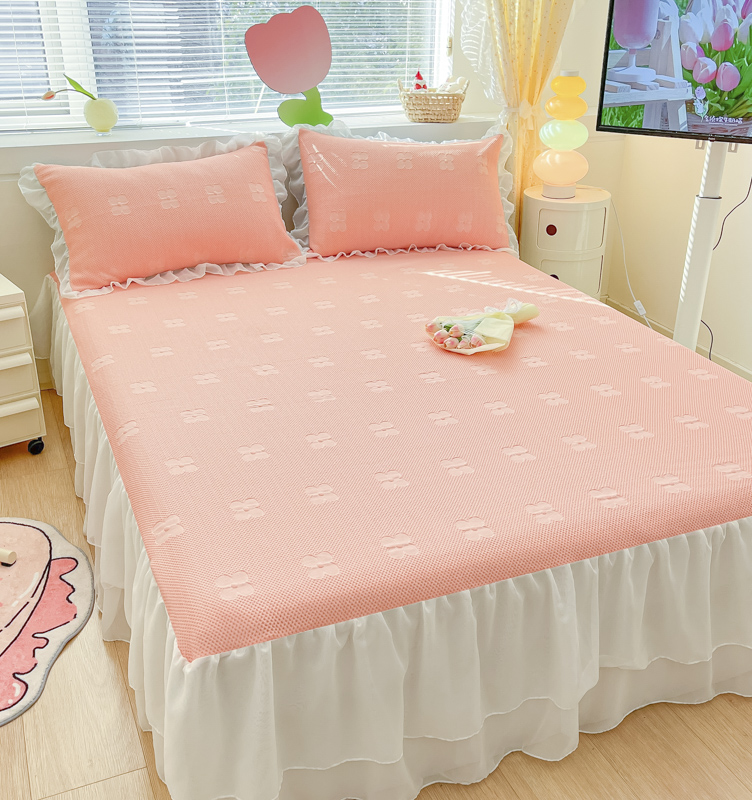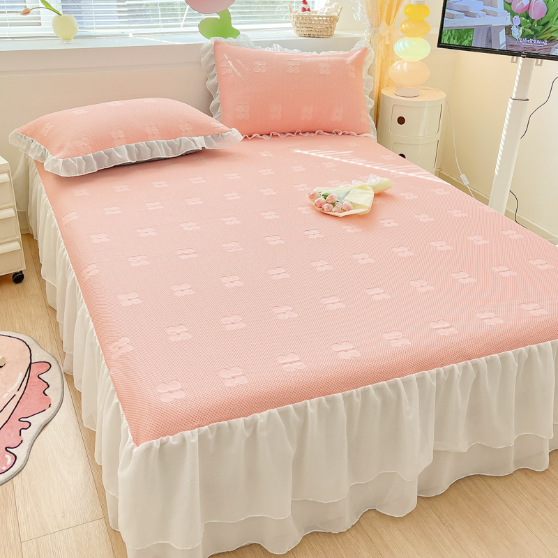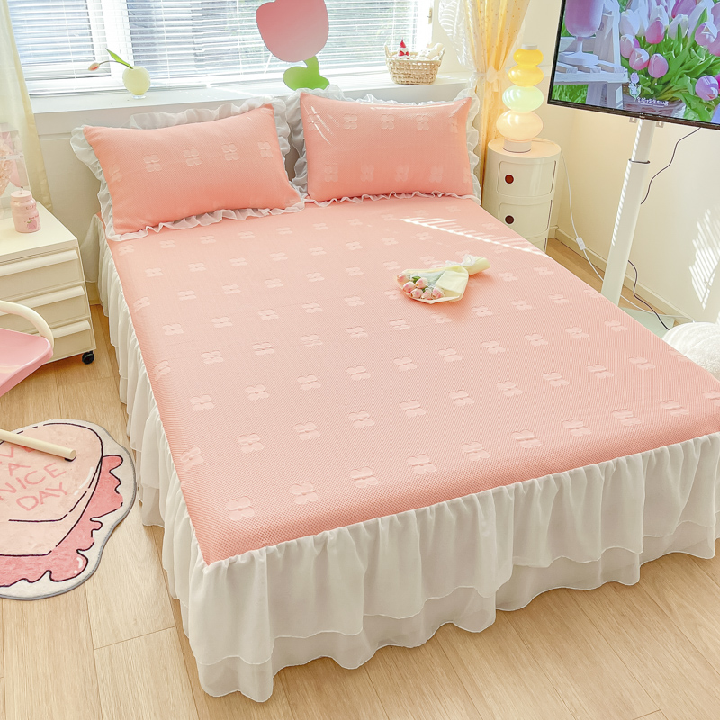 同田 2023新款凉豆豆床裙款凉席冰丝凉感豆豆席 少女粉