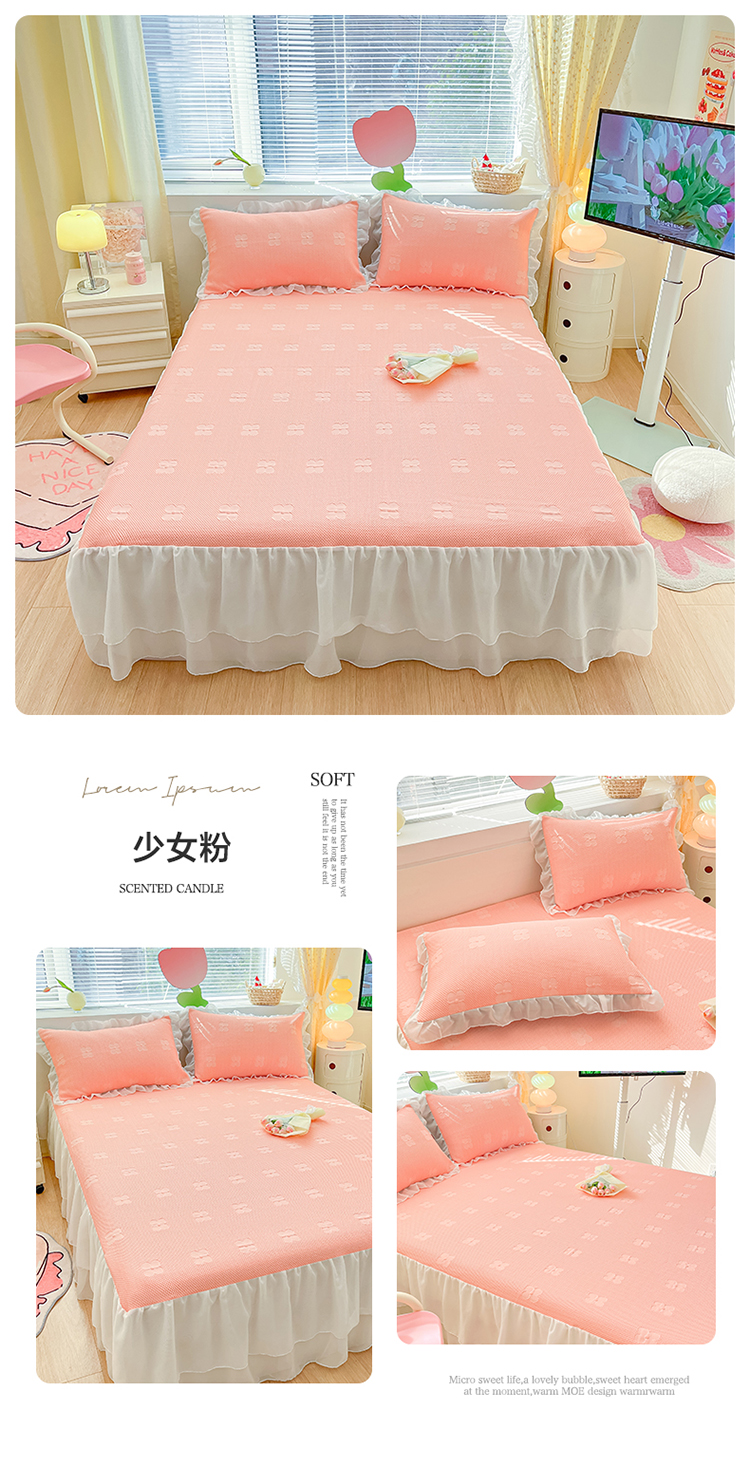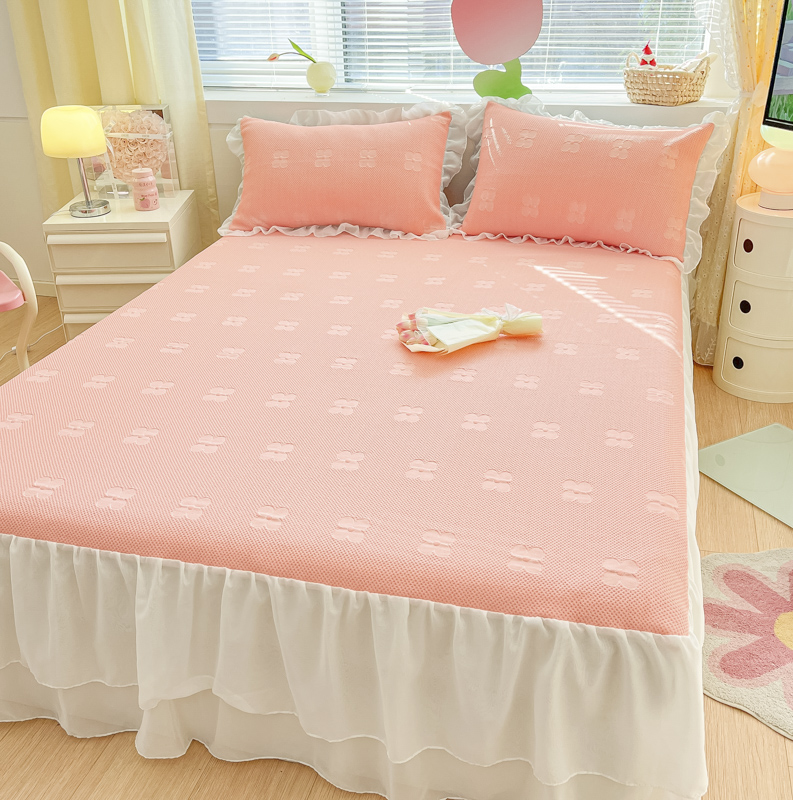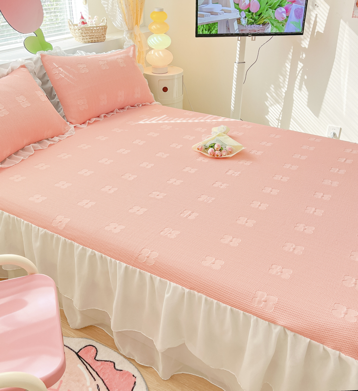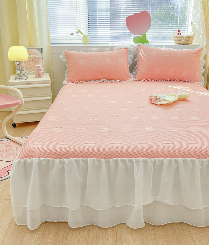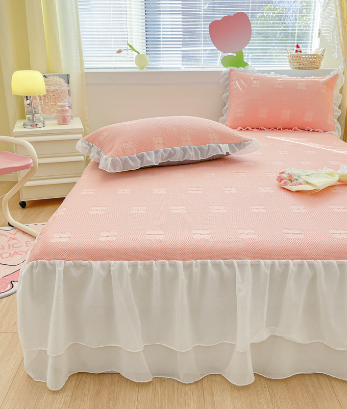 同田 2023新款凉豆豆床裙款凉席冰丝凉感豆豆席 少女粉